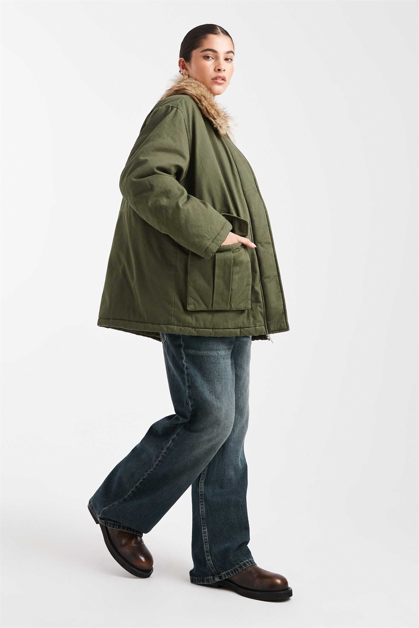 Парка с воротником из искусственного меха