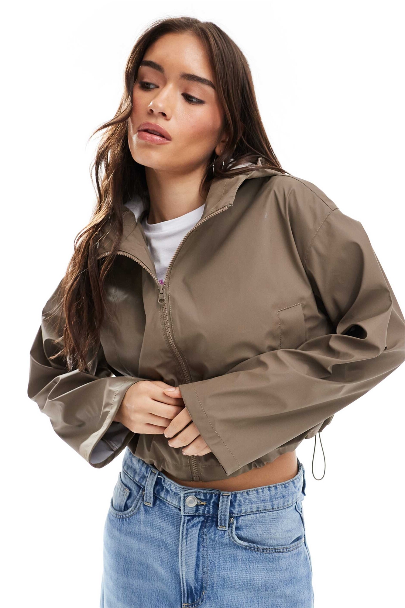 Короткая прорезиненная дождевая куртка с капюшоном