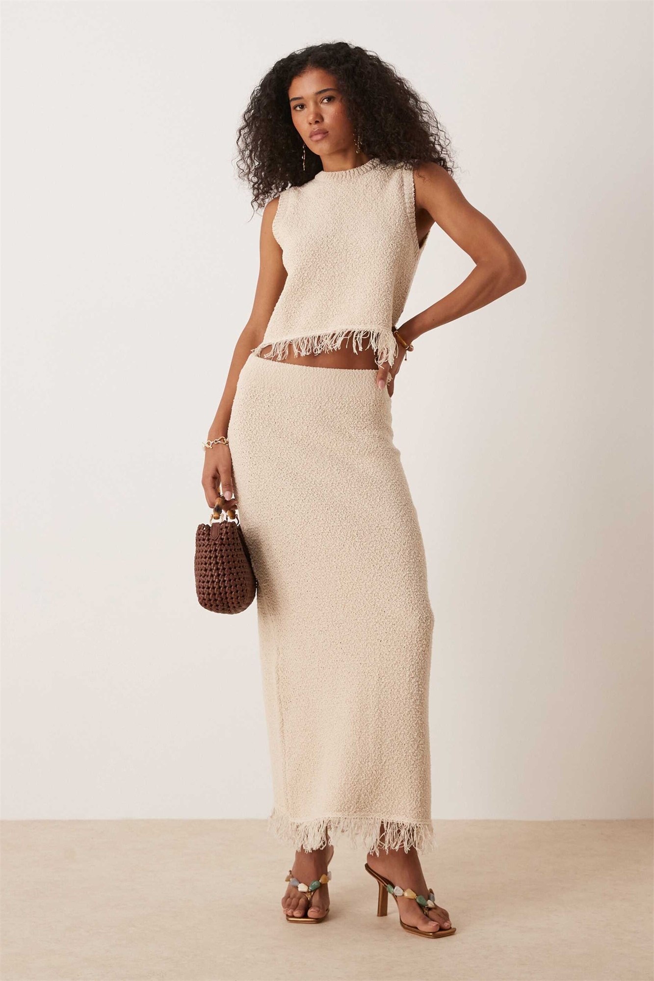 Макси-юбка премиум-класса с фактурной текстурой и бахромой по низу co-ord