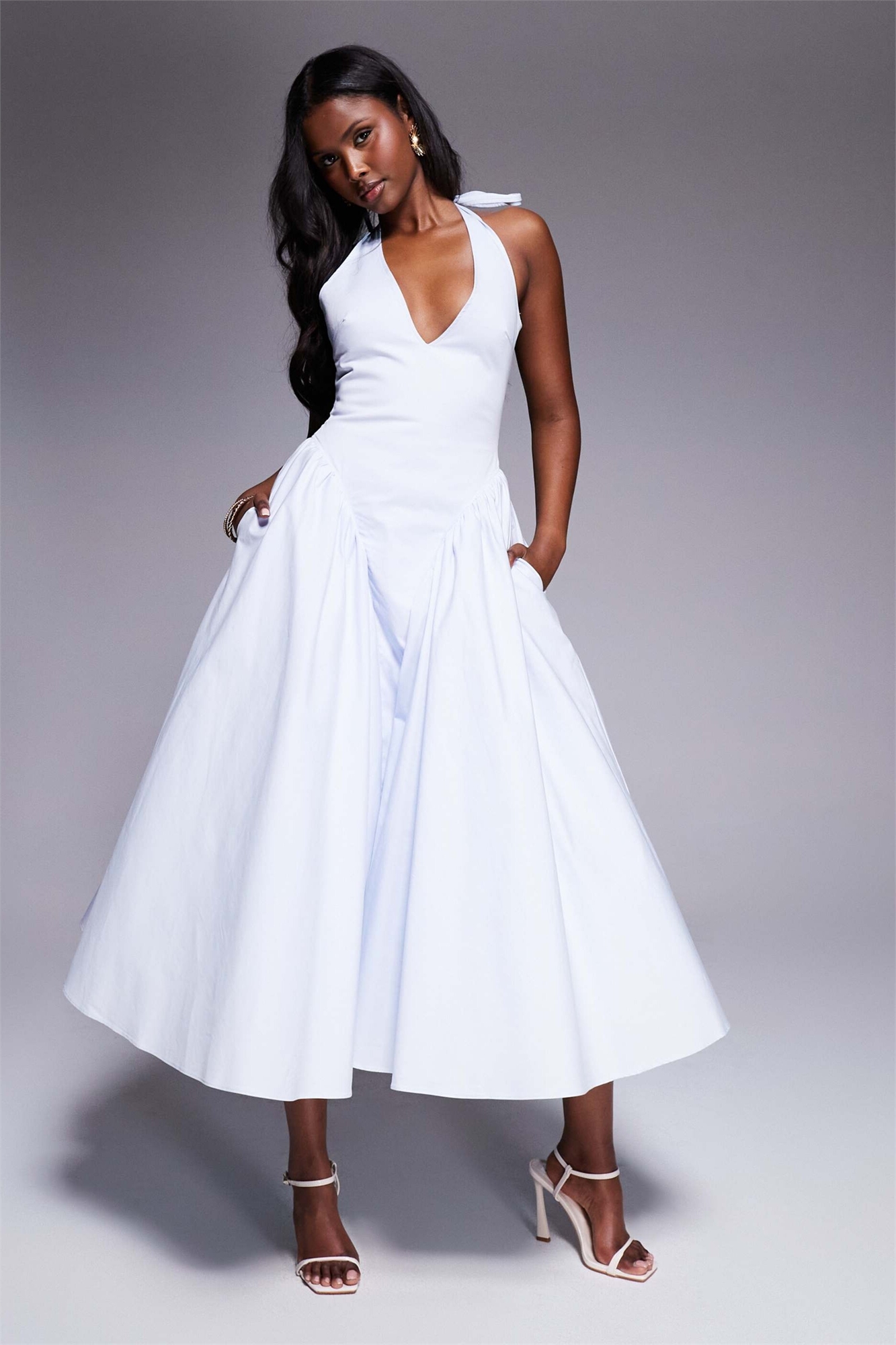 Платье-миди из хлопкового твила с завязками на шее от Marilyn