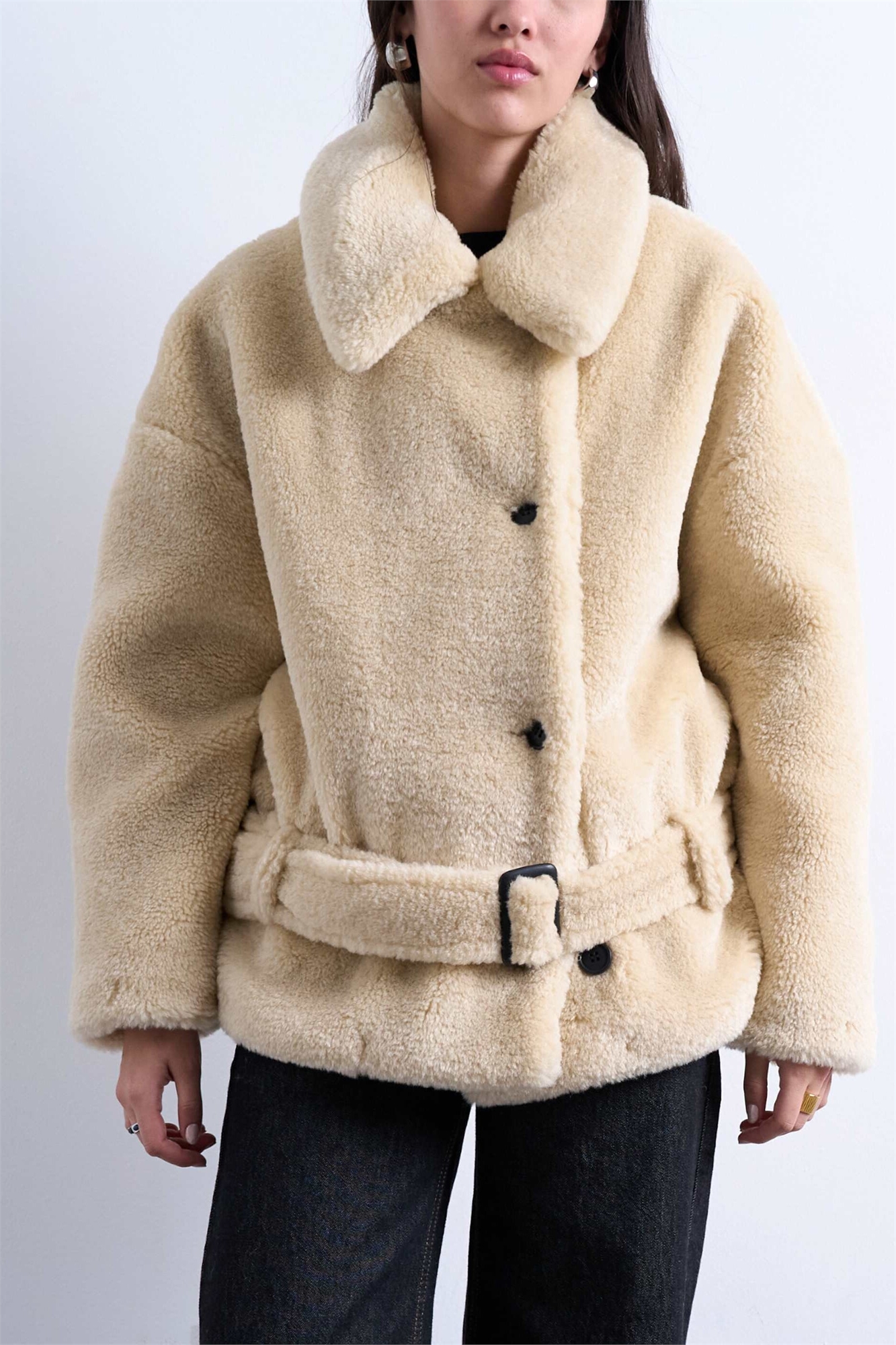 Короткое пальто-куртка Borg с ремнем