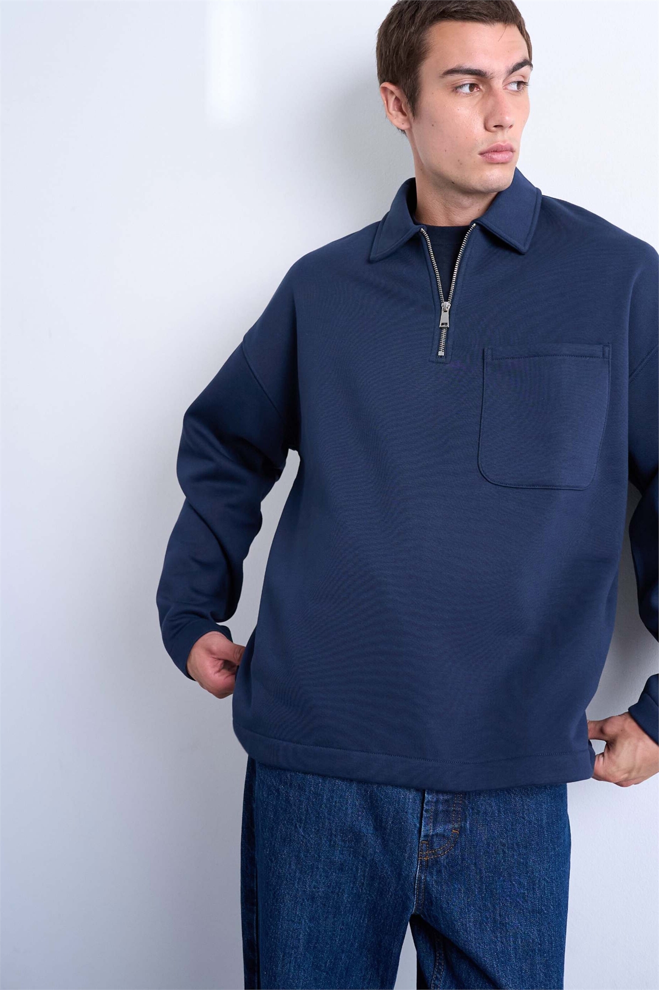 Поло с застежкой-молнией на 1/4 длины, свободный крой премиум-класса