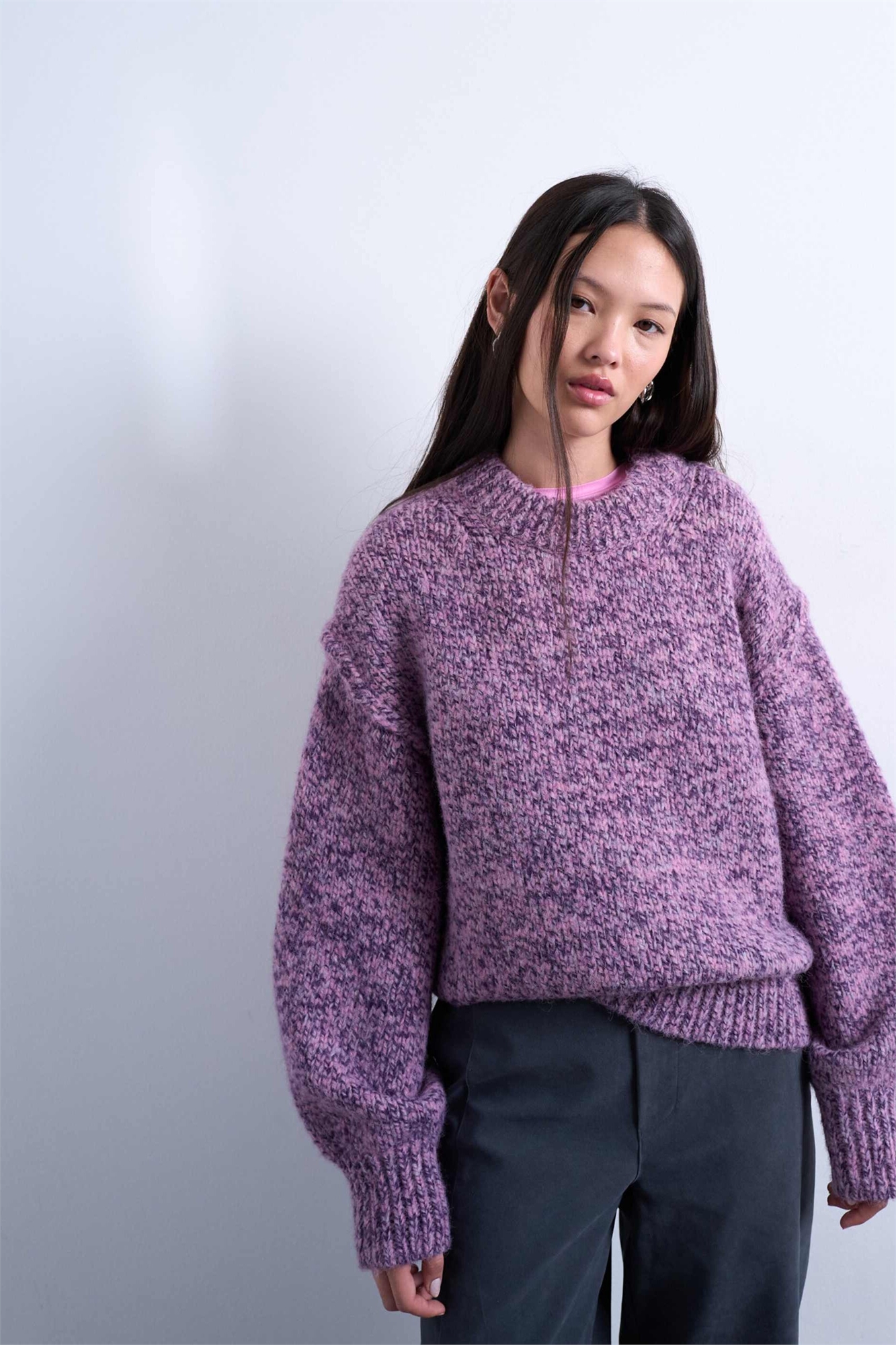 Свитер из вязаной пушистой пряжи с скрученными нитями