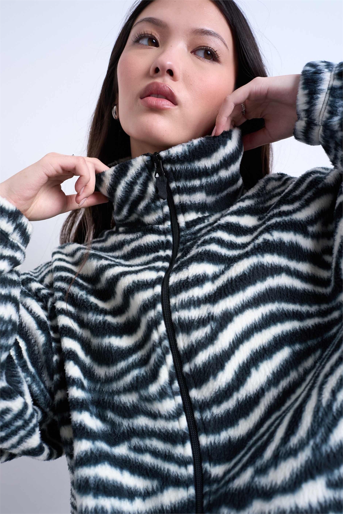 Флисовая кофта Borg с застежкой-молнией и принтом «зебра»