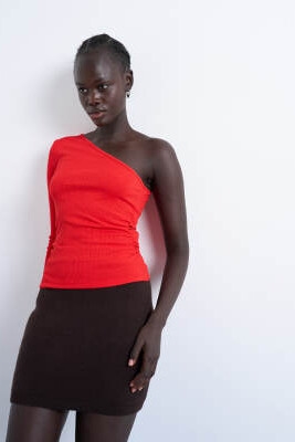 Топ с рюшами по бокам и одним рукавом