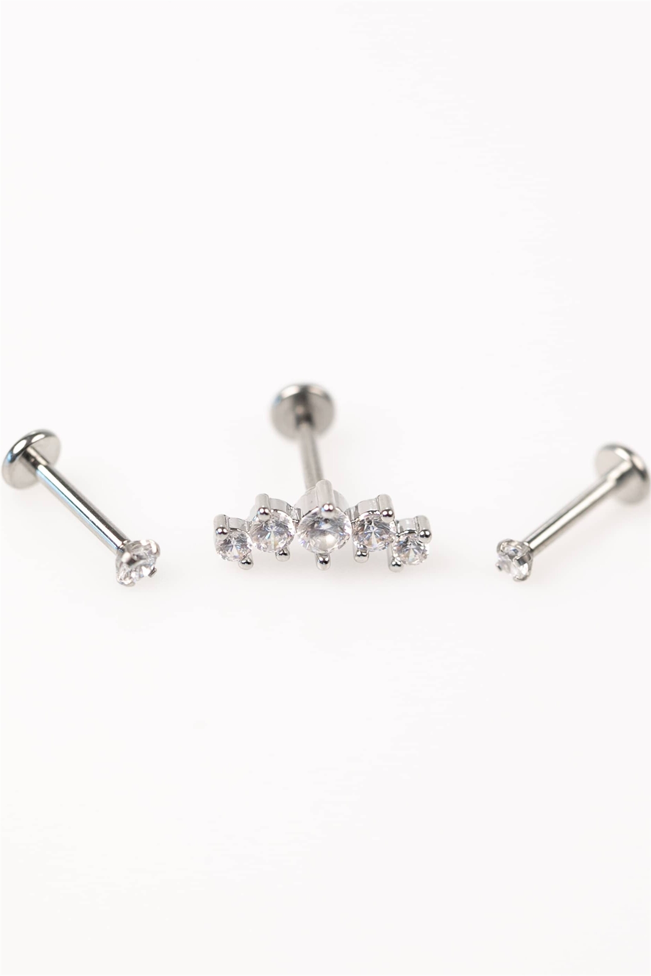 Основные материалы серебристого цвета: 80 % хирургическая сталь, 20 % кубический цирконий.