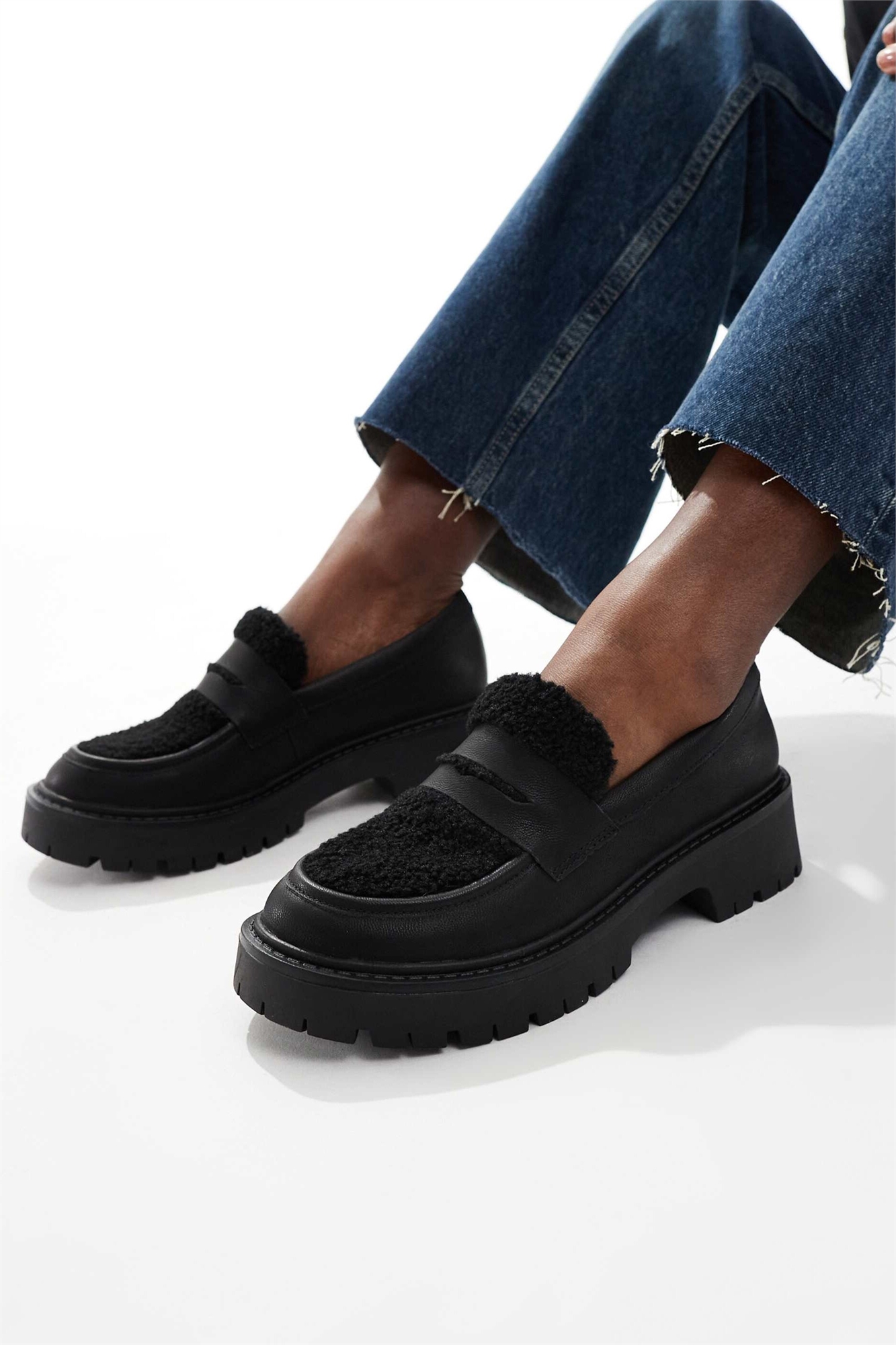 Лоферы Olivia из меховой ткани контрастного цвета
