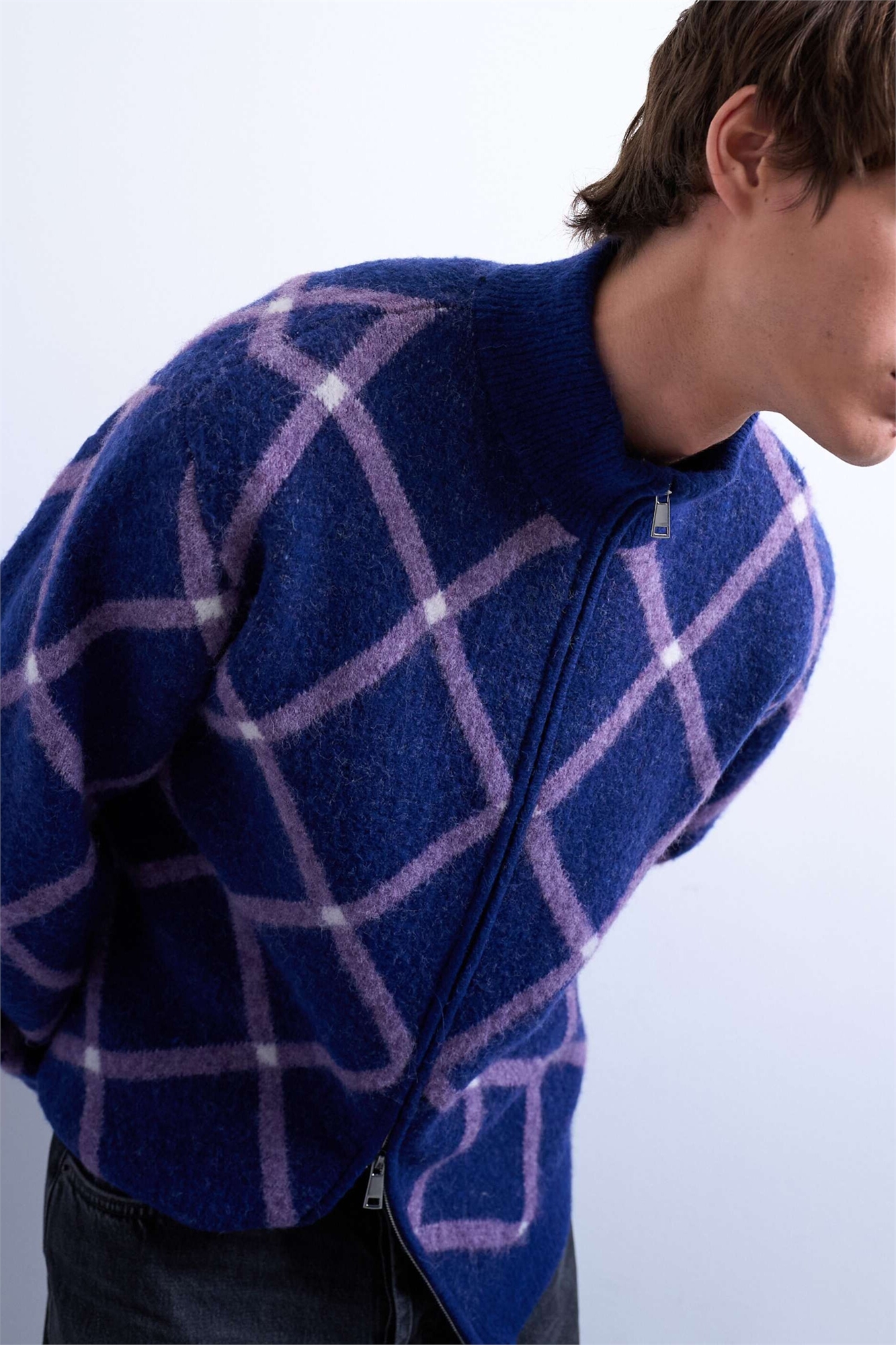 Кардиган из трикотажа с узором «аргил» и воротником-воронкой, на молнии, прямого кроя