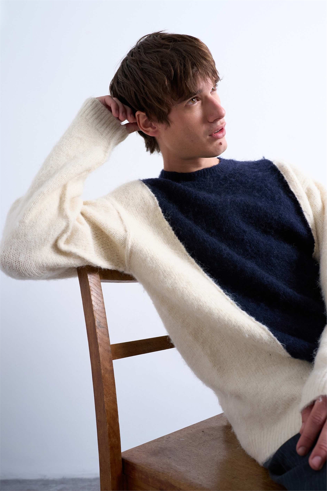 Свитер свободного кроя с вставками из пушистой пряжи