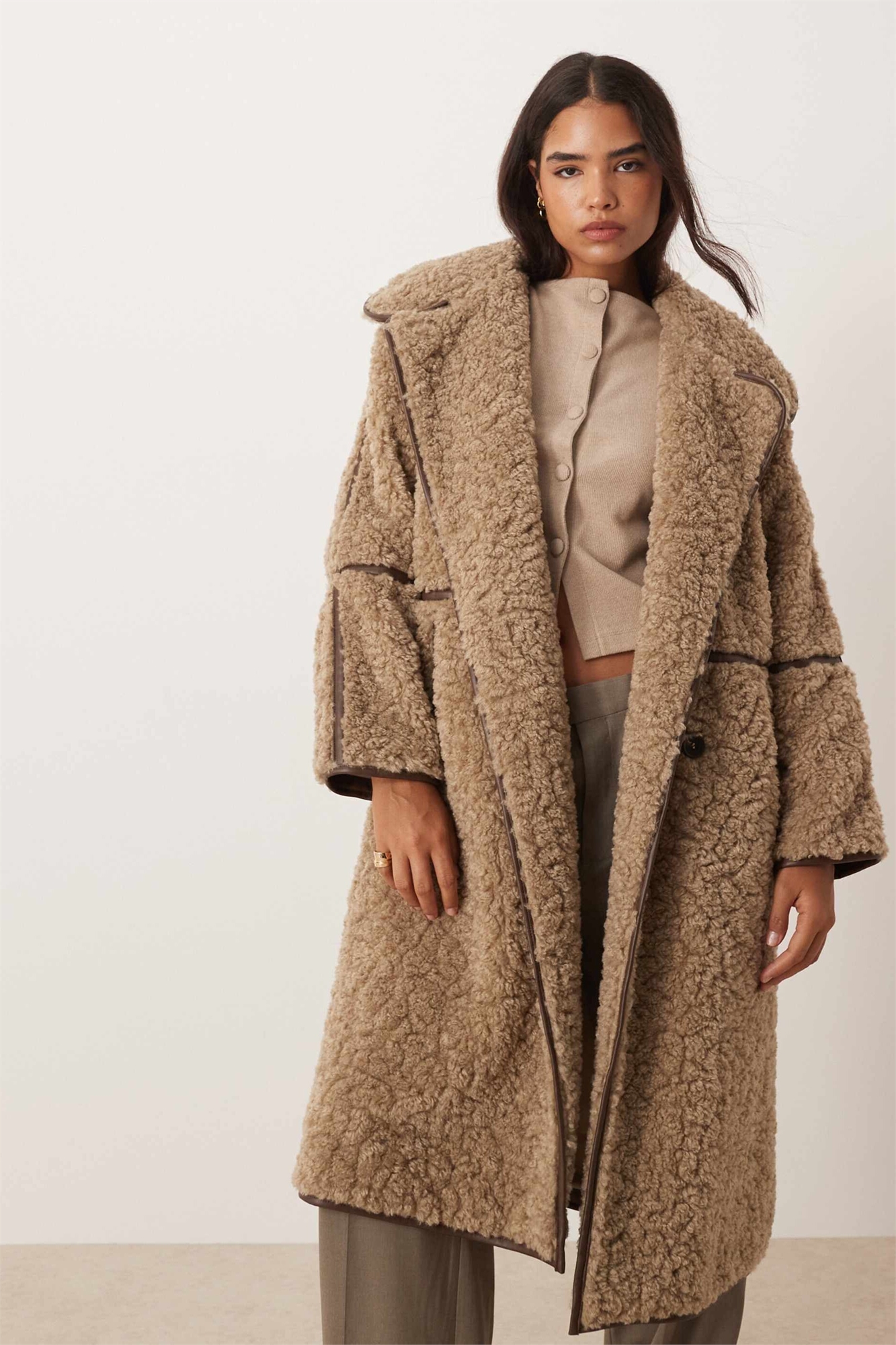 Пальто из овчины с длинным покроем