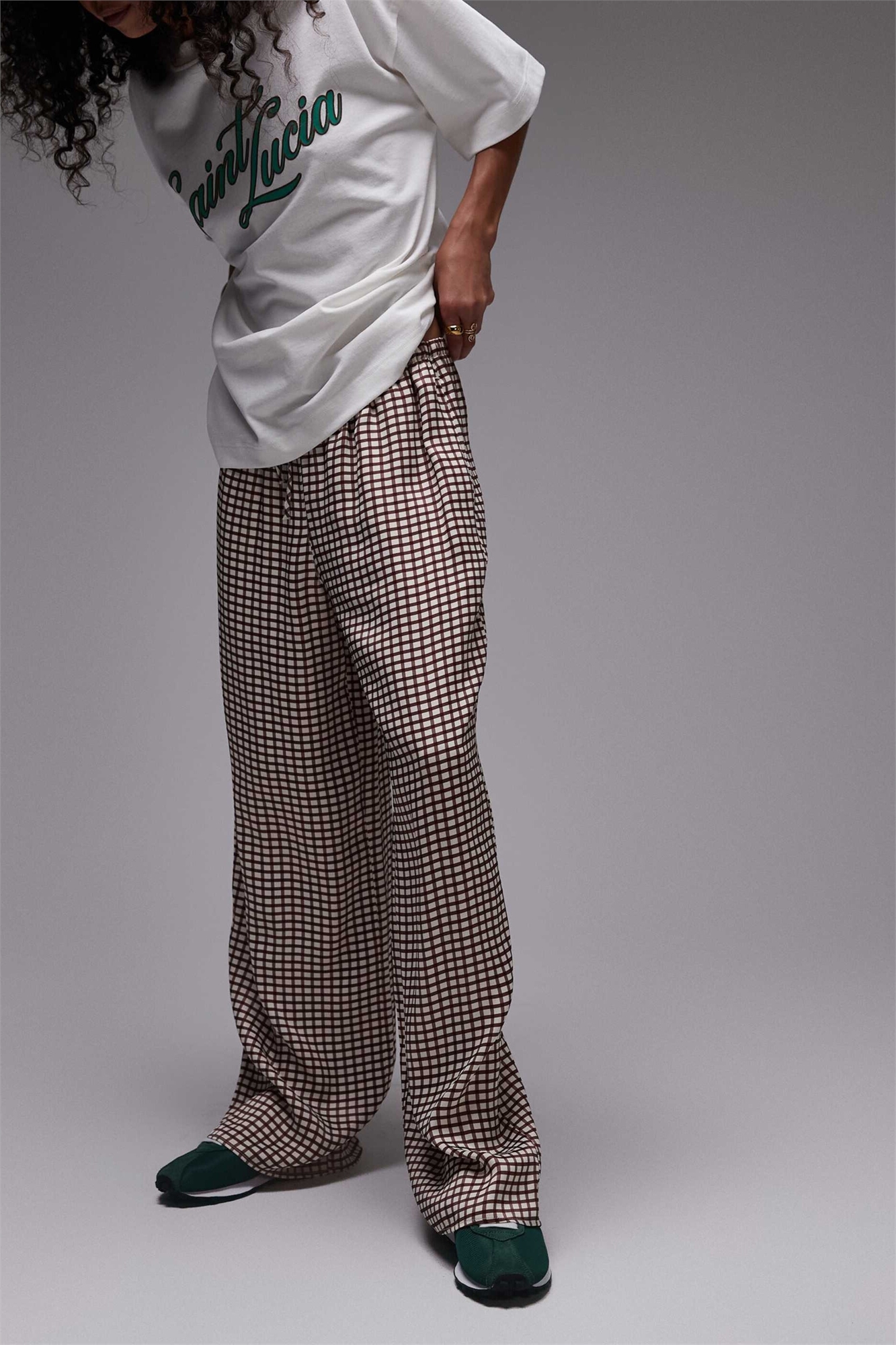 Брюки в клетку с широкими брючинами и атласным шнурком co-ord