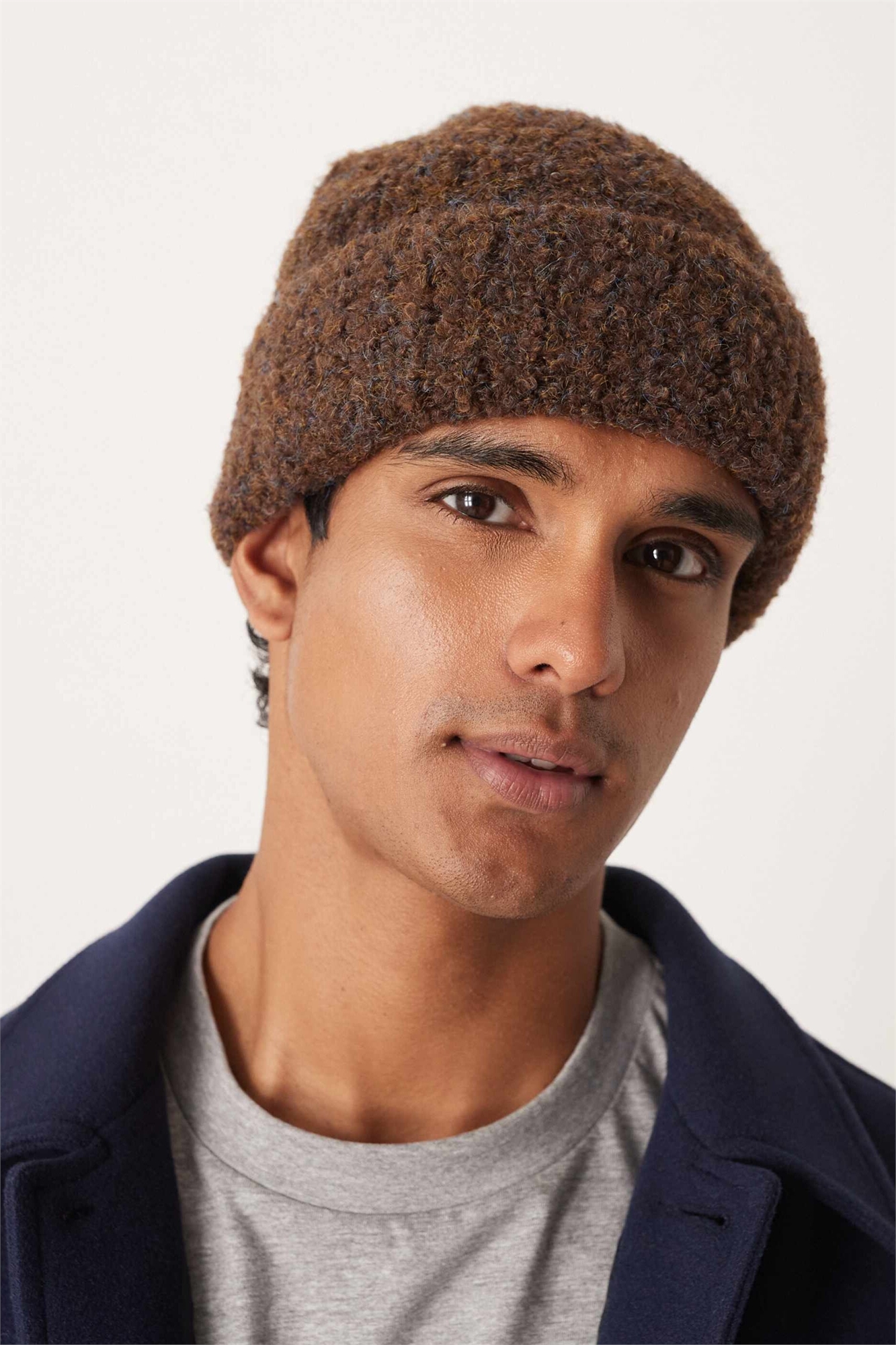 Вязаная шапка из букле с ребристой текстурой, коричневого цвета
