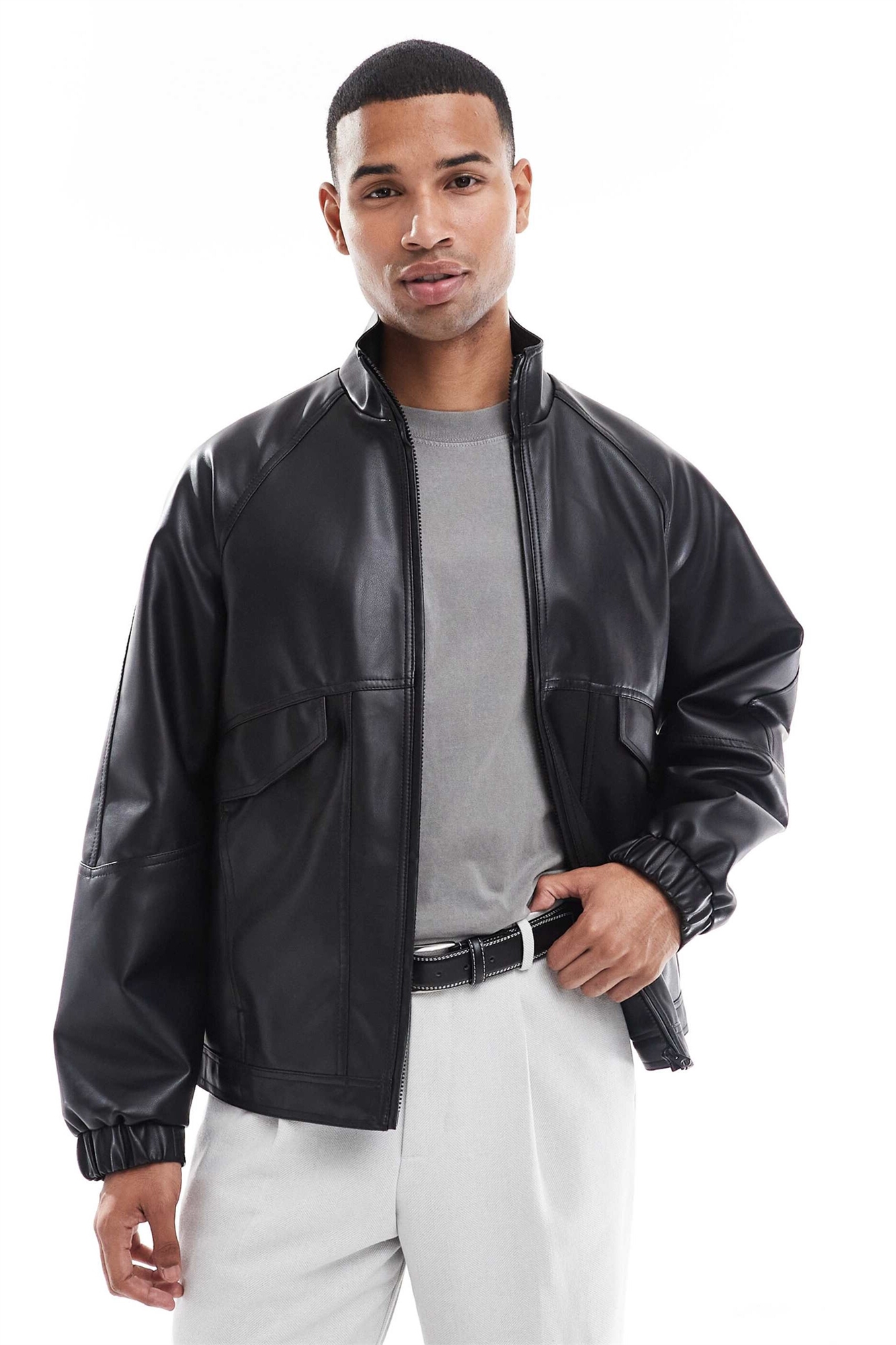 Бомбер из искусственной кожи с воротником-воронкой