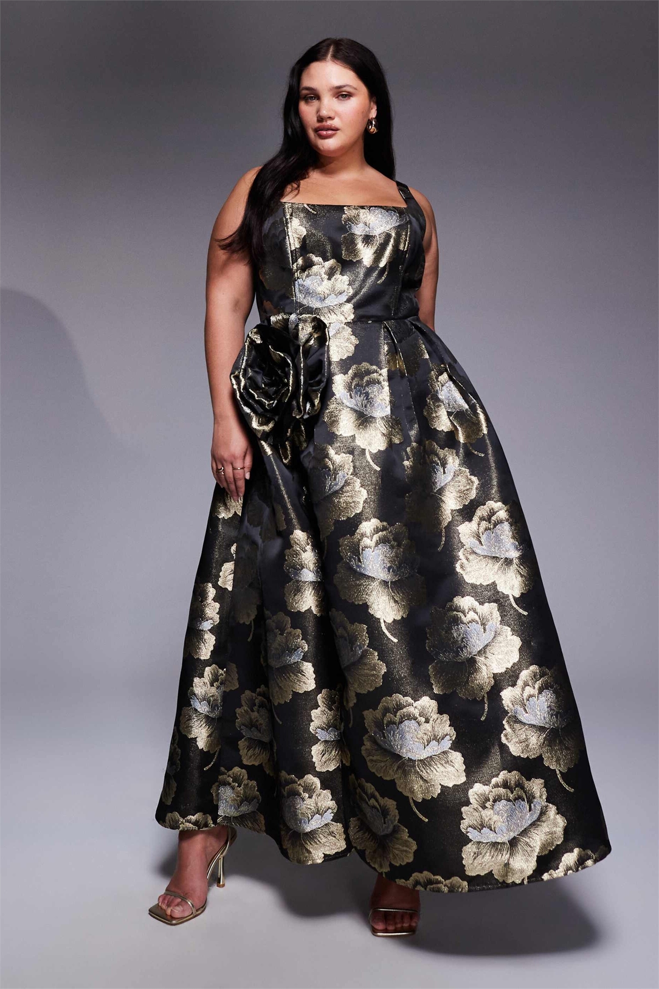 Макси-платье с 3D-цветочным узором из жаккарда