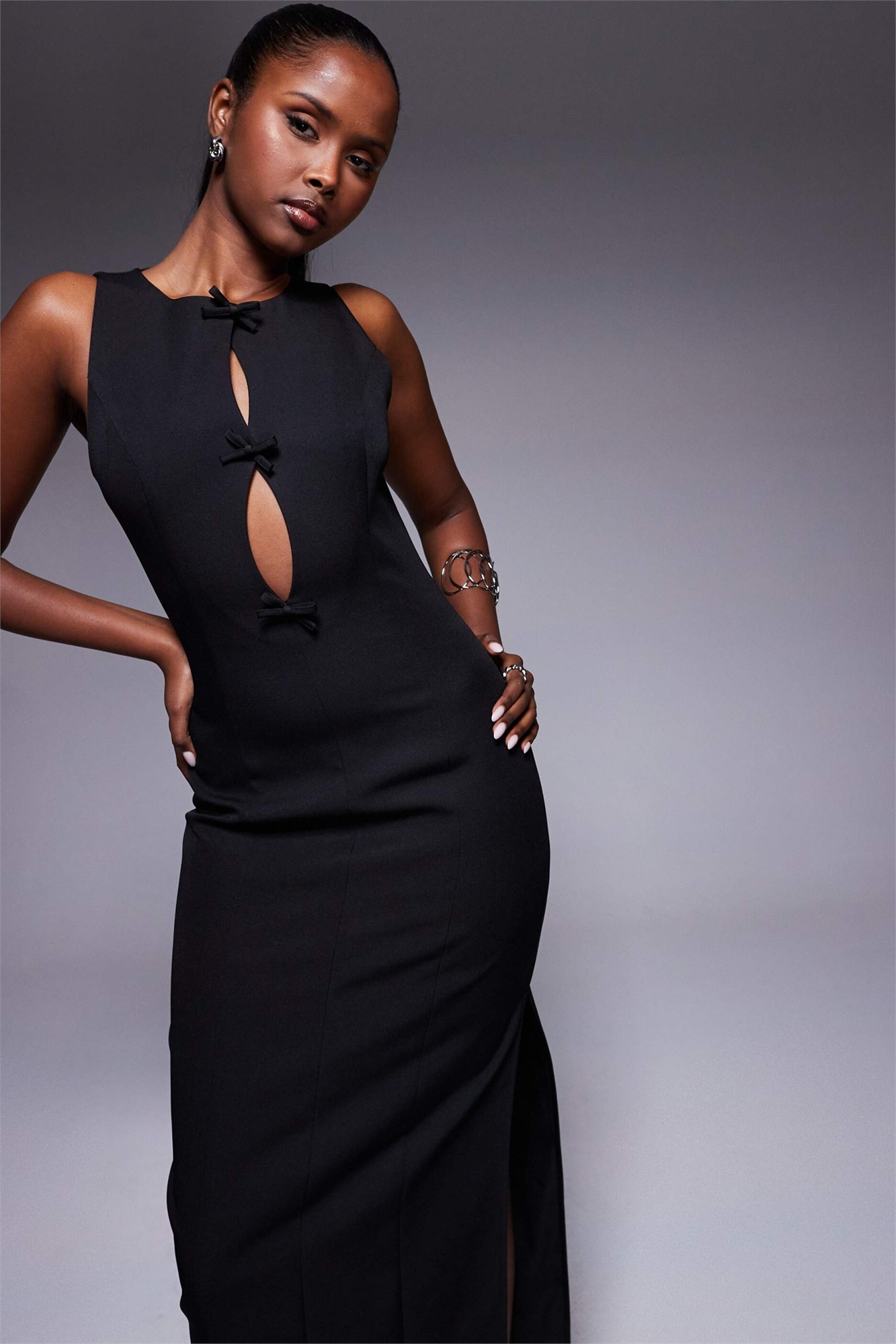 Макси-платье с эксклюзивным вырезом в виде банта и боковым разрезом