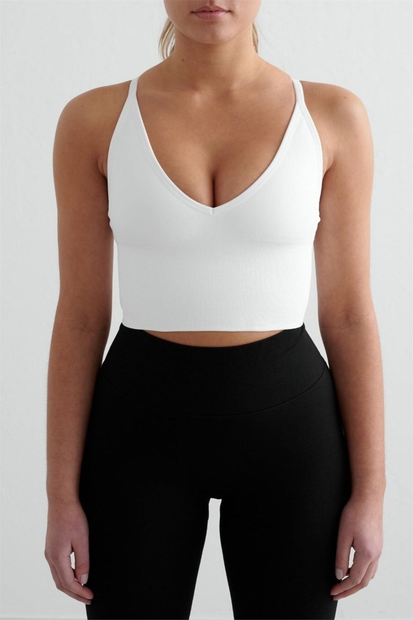 Белый бралетт бесшовной конструкции с перекрещивающимися бретелями на спине