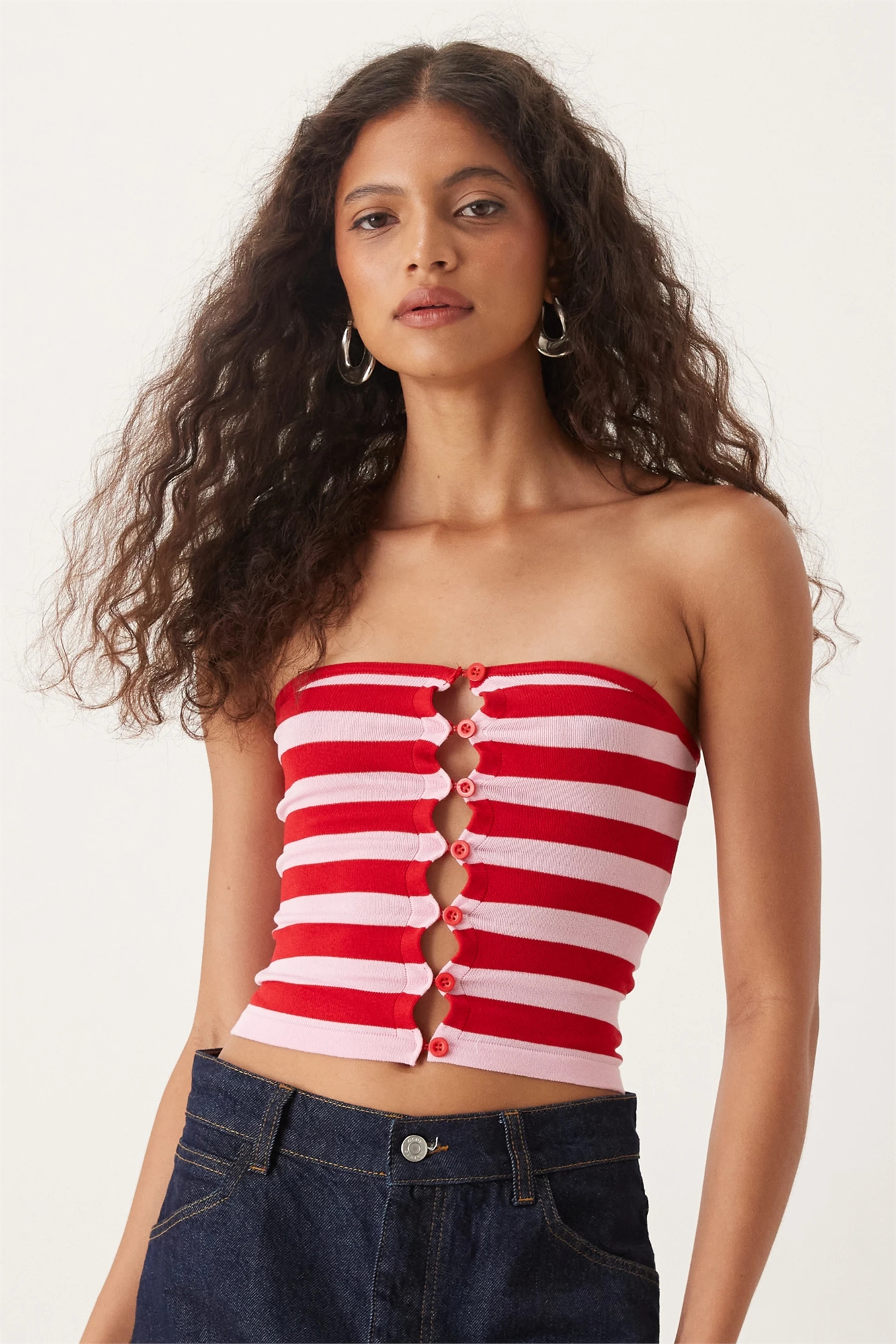 Топ из трикотажа с полосками и пуговицами от Sarella