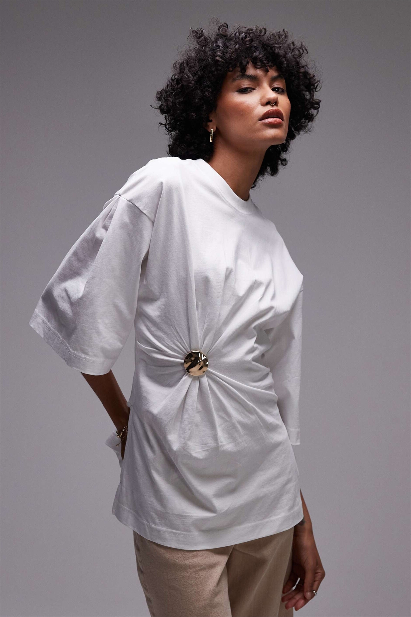 Топ из трикотажа свободного кроя с асимметричной золотой застежкой