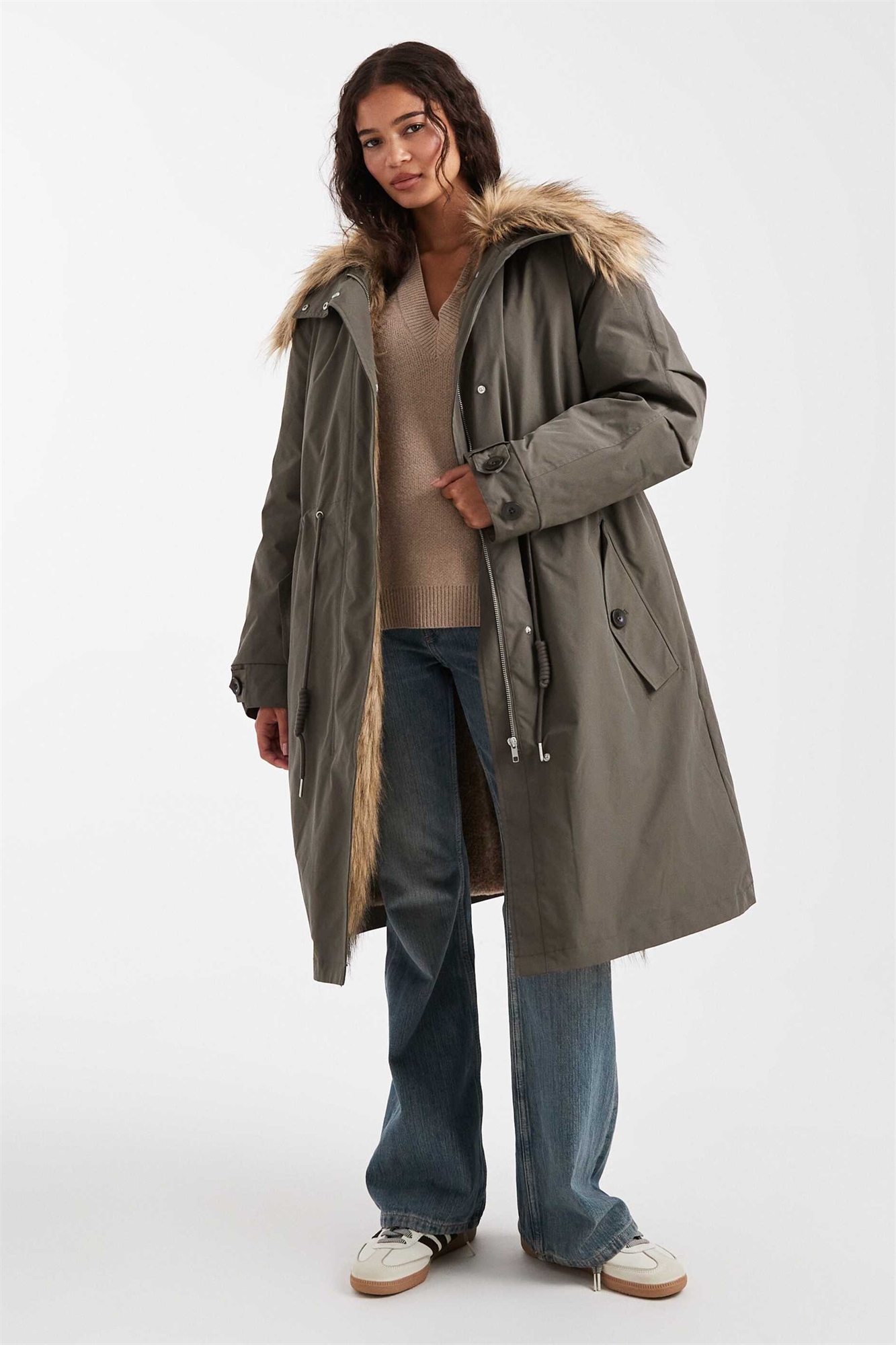 Парка свободного кроя с меховой оторочкой