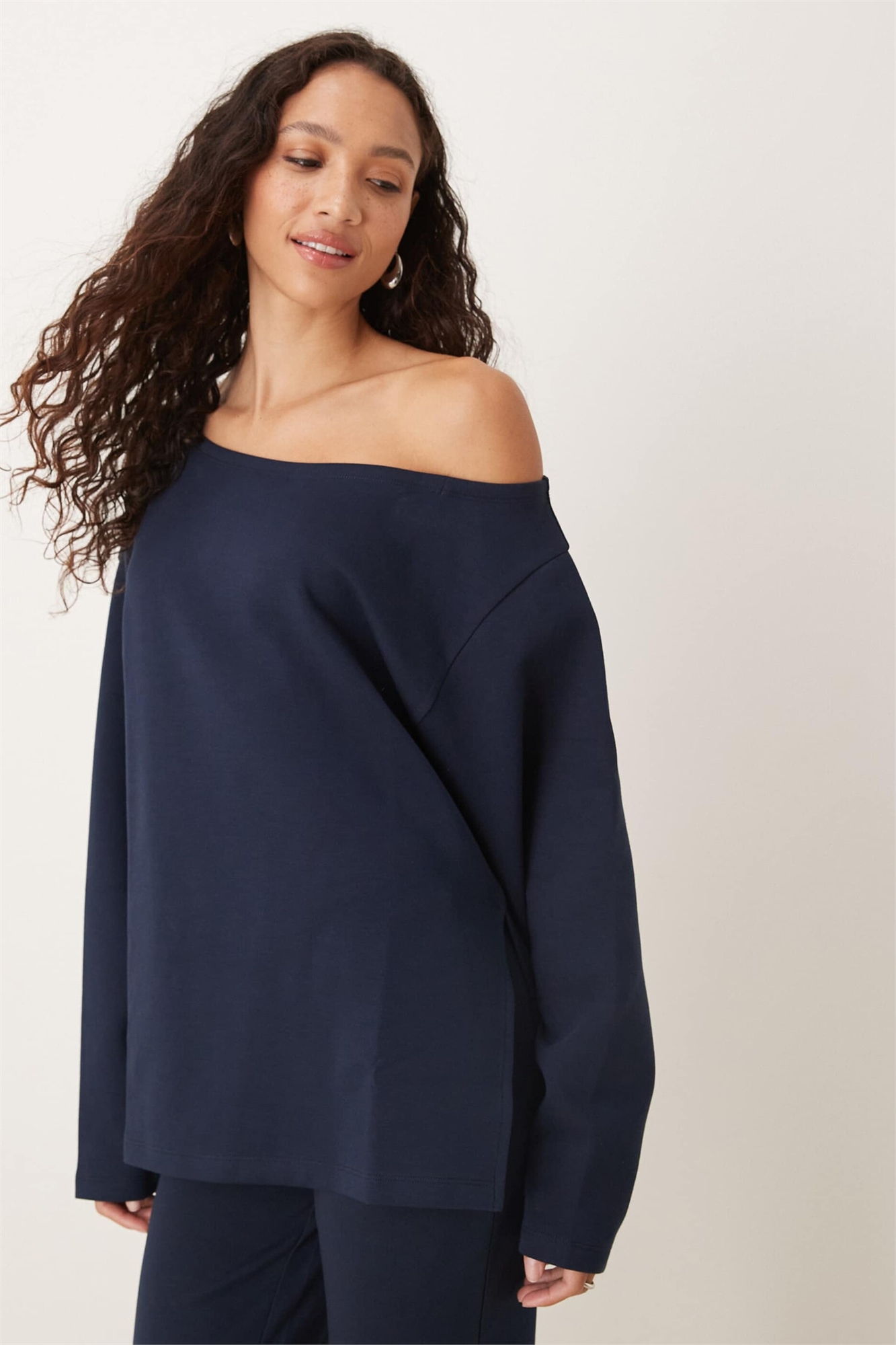 Свитшот свободного кроя с открытыми плечами из интерлока