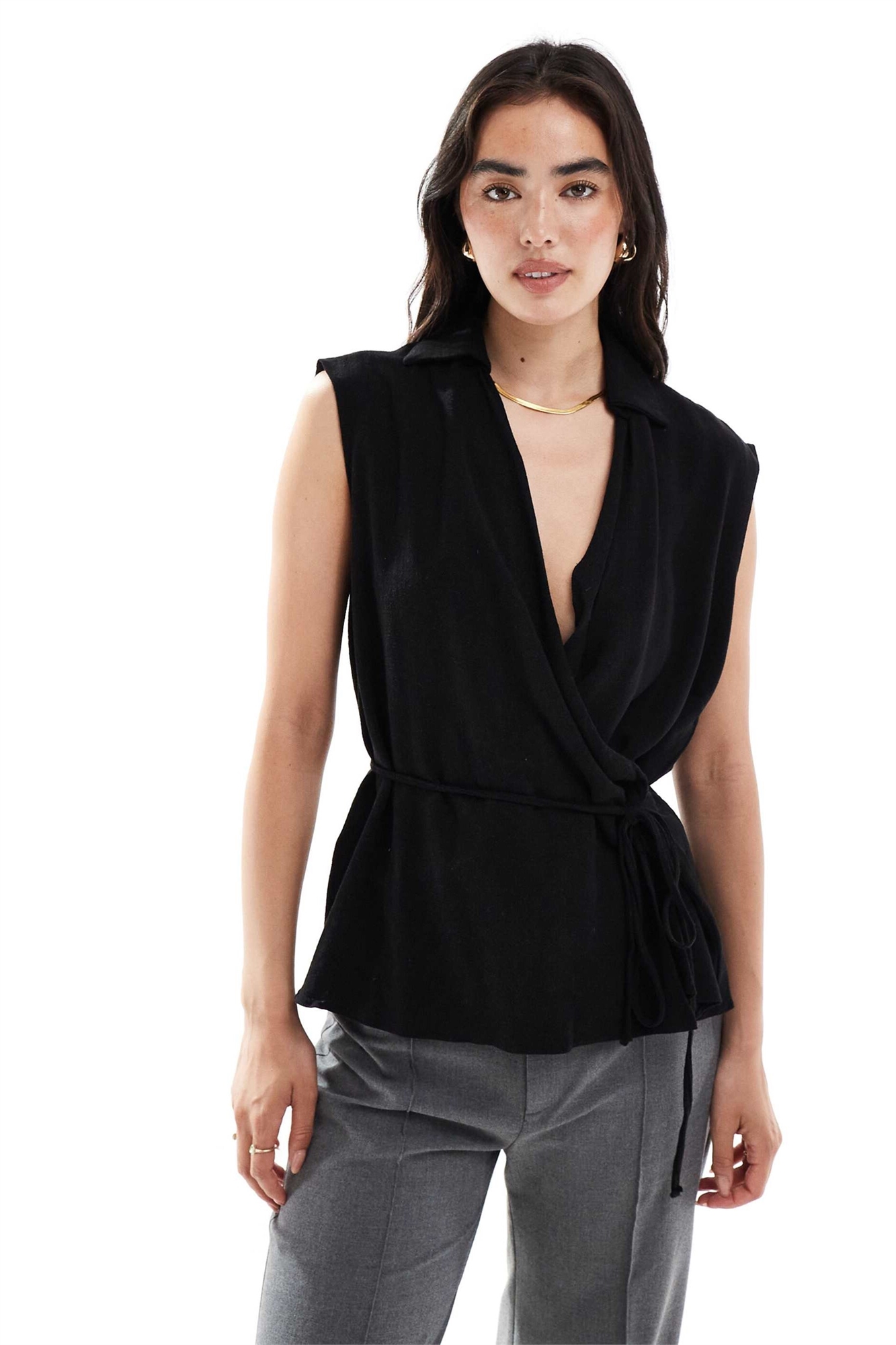Блузка без рукавов с перекрещивающимся вырезом и эффектом льна от ASOS DESIGN
