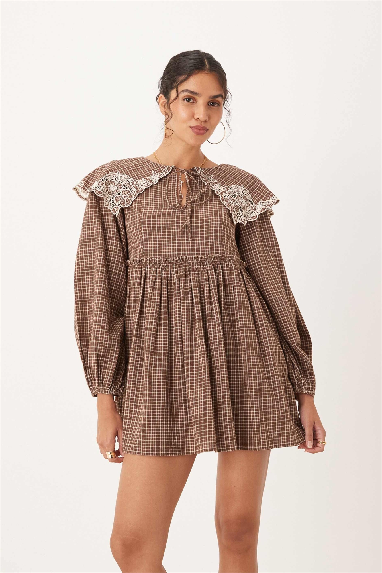Мини-платье-футляр с объемным воротником и кружевной отделкой