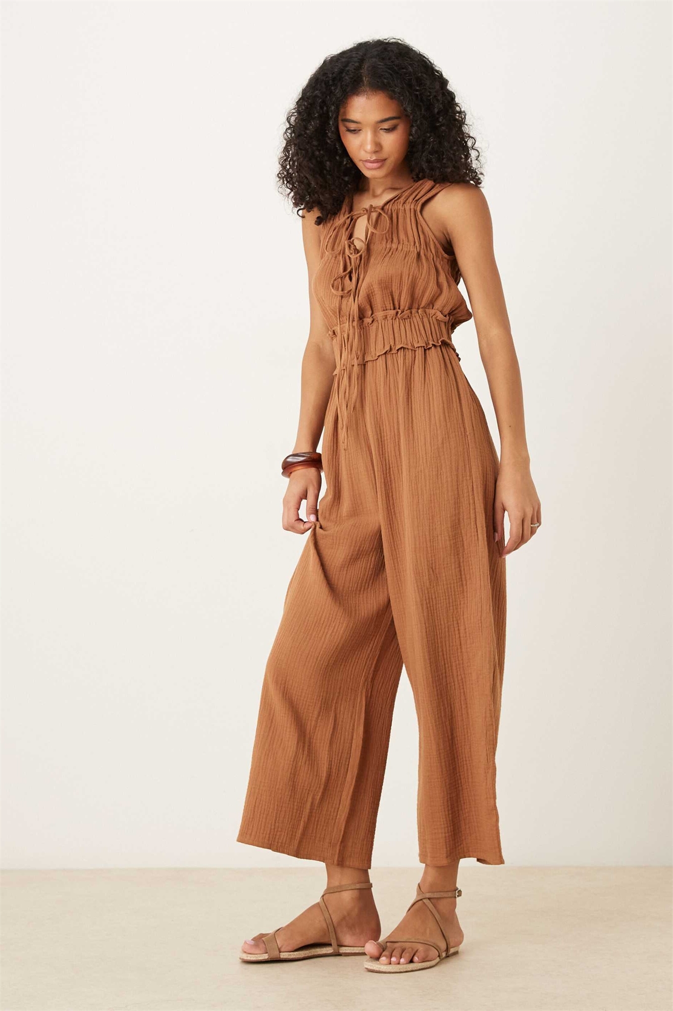 Комбинезон с двойной драпировкой на груди