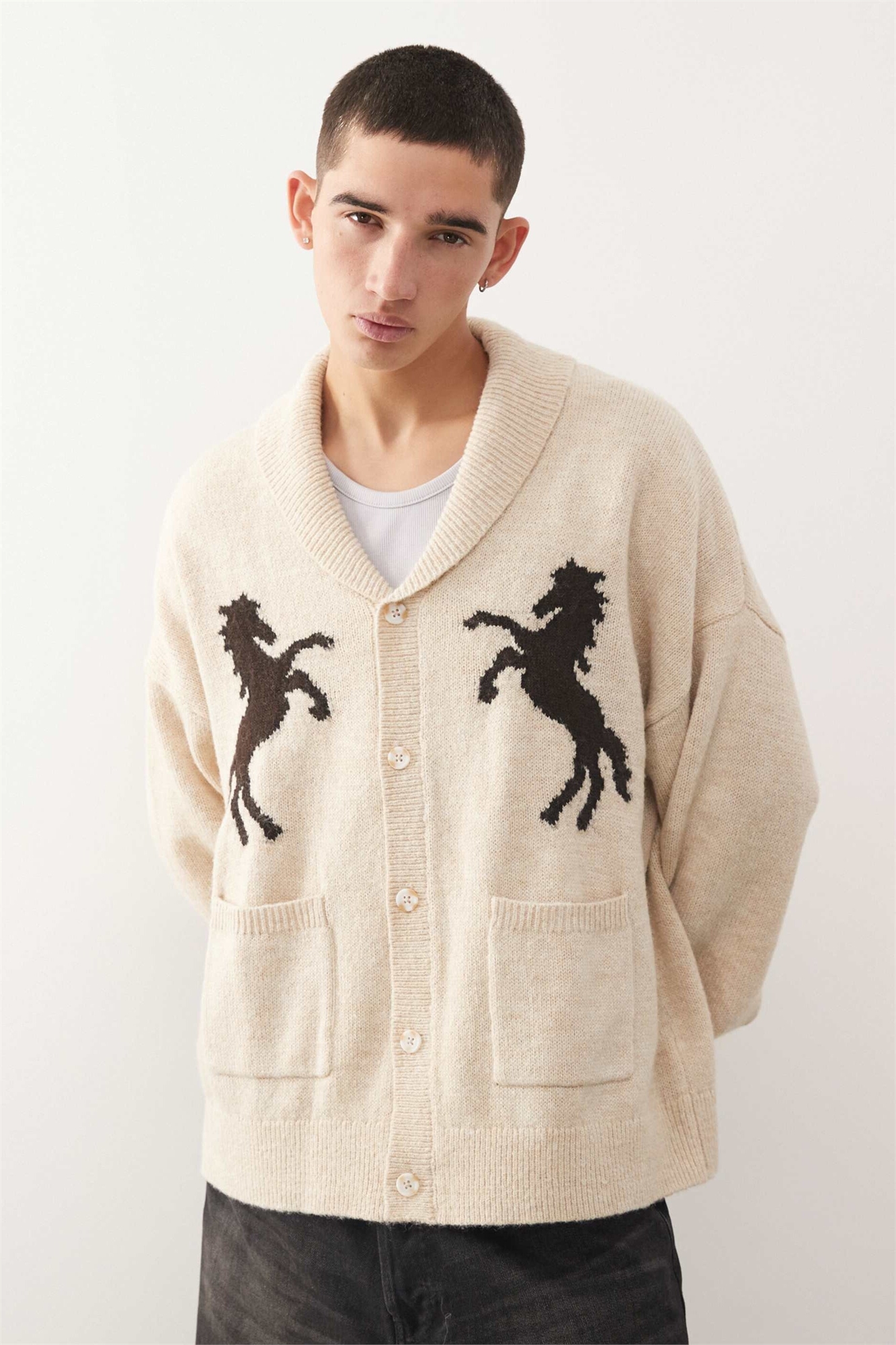 Вязаный кардиган с широким воротником и принтом в виде лошади