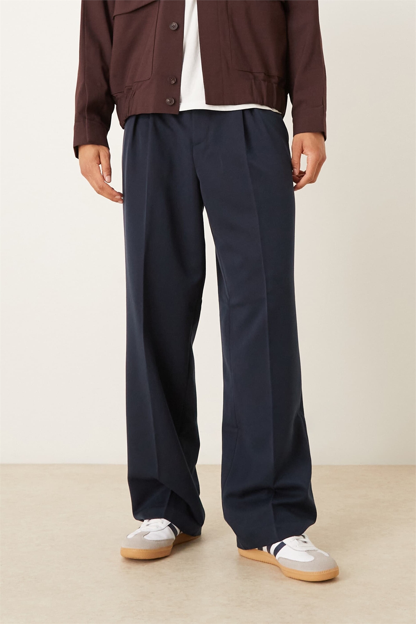Стильные брюки с широкими брючинами, эластичным поясом и обратной складкой