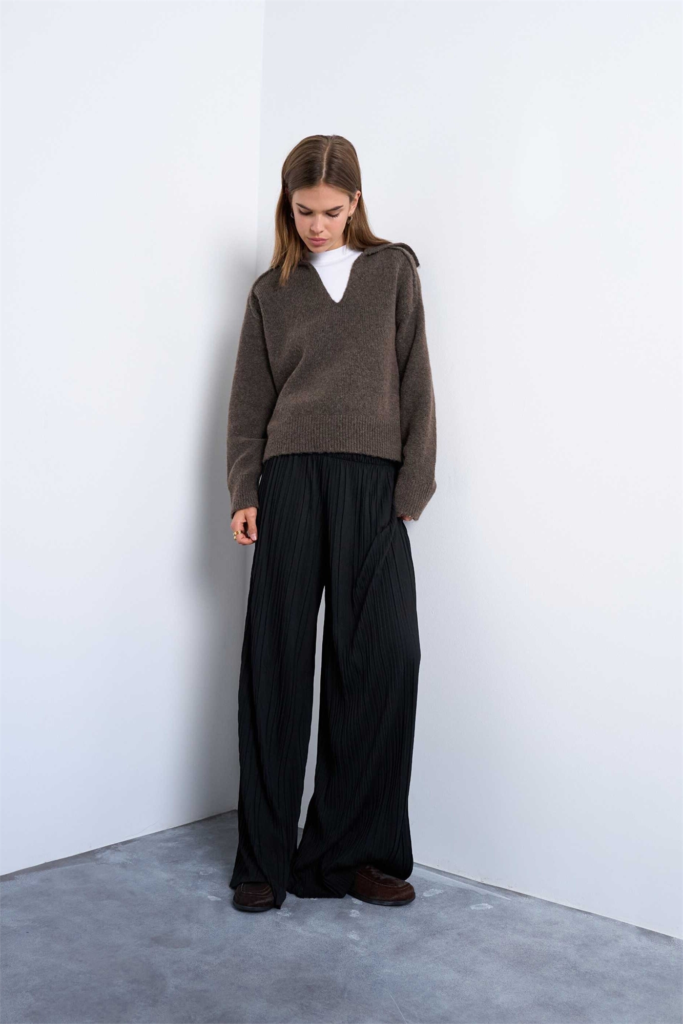 Брюки с широкими брючинами и гофрированной текстурой