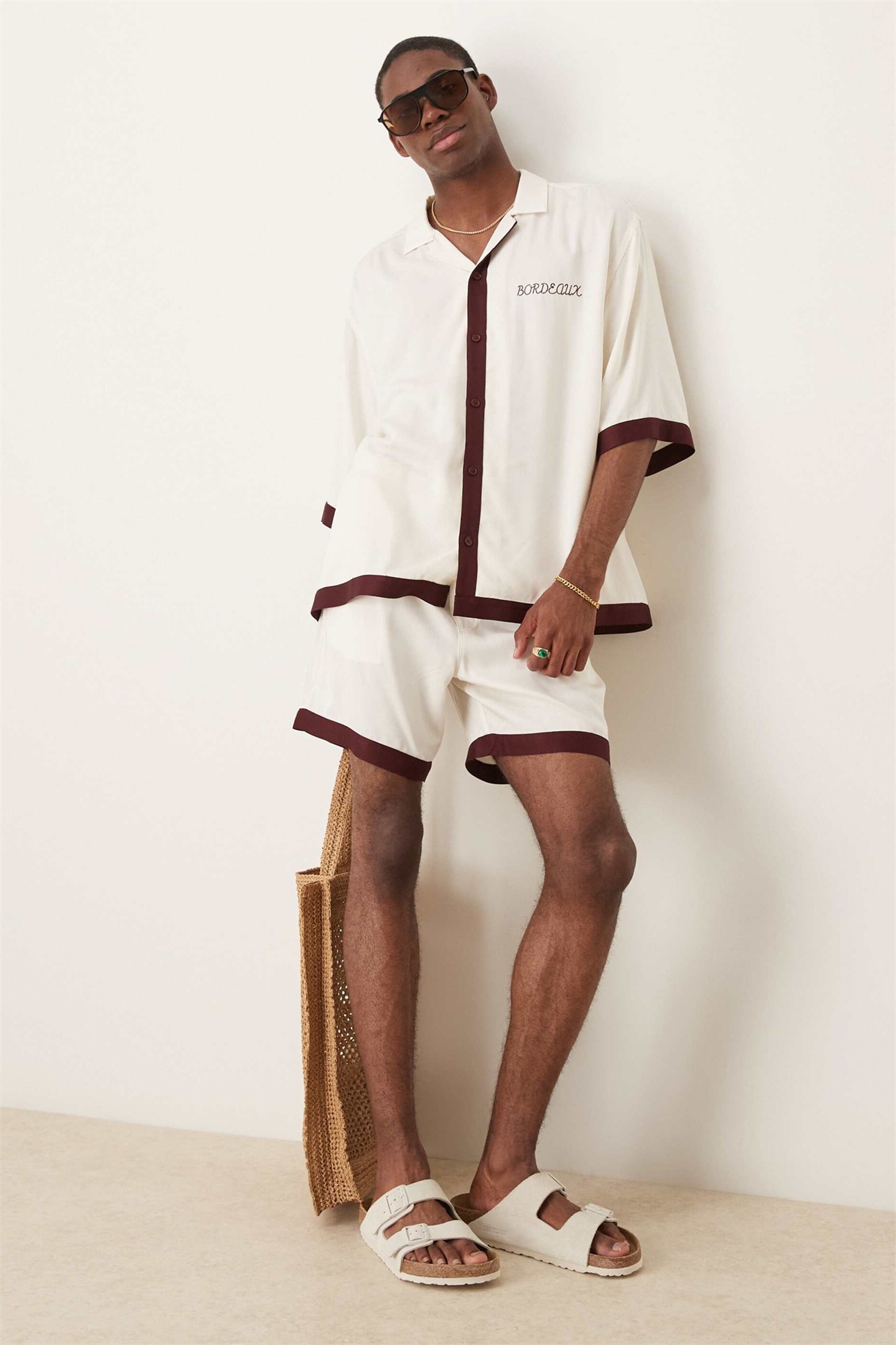 Коротенькие шорты средней длины с принтом по краю в бежевом цвете