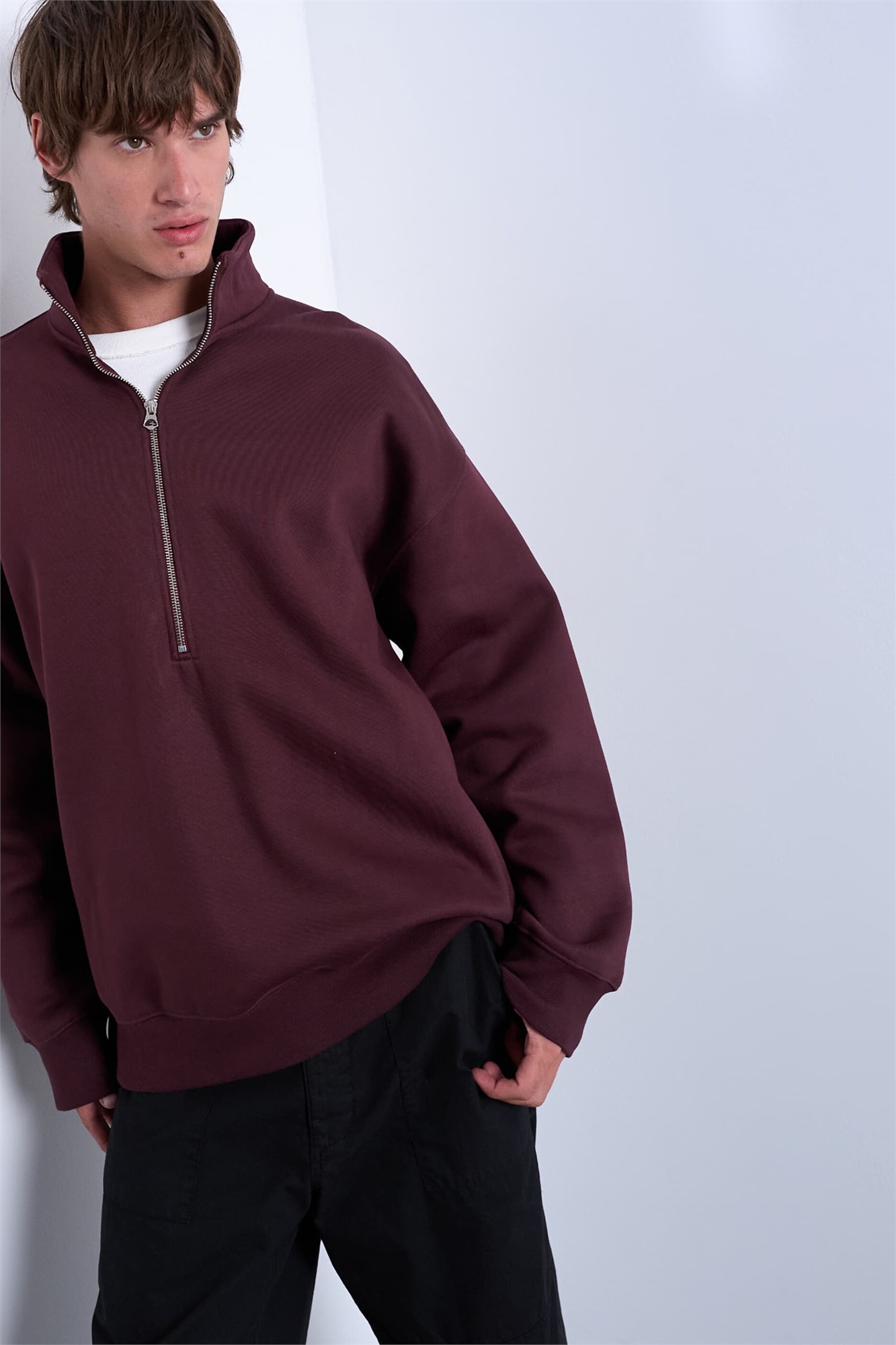 Модель премиум-класса с свободным кроем, воротником-воронкой и застежкой-молнией на 1/4 длины