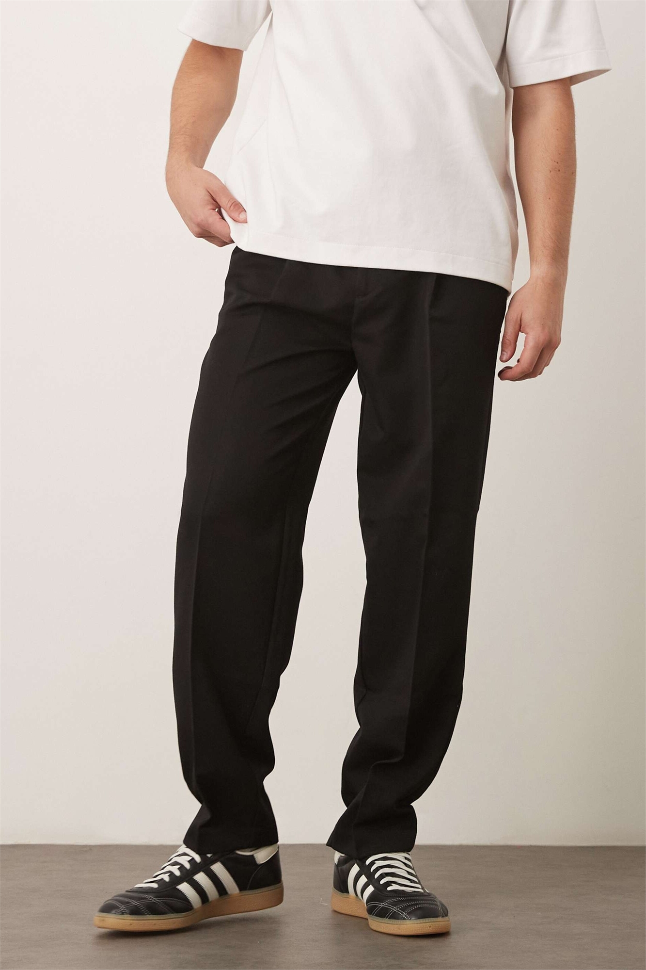 Стильные широкие брюки зауженного кроя со складкой спереди