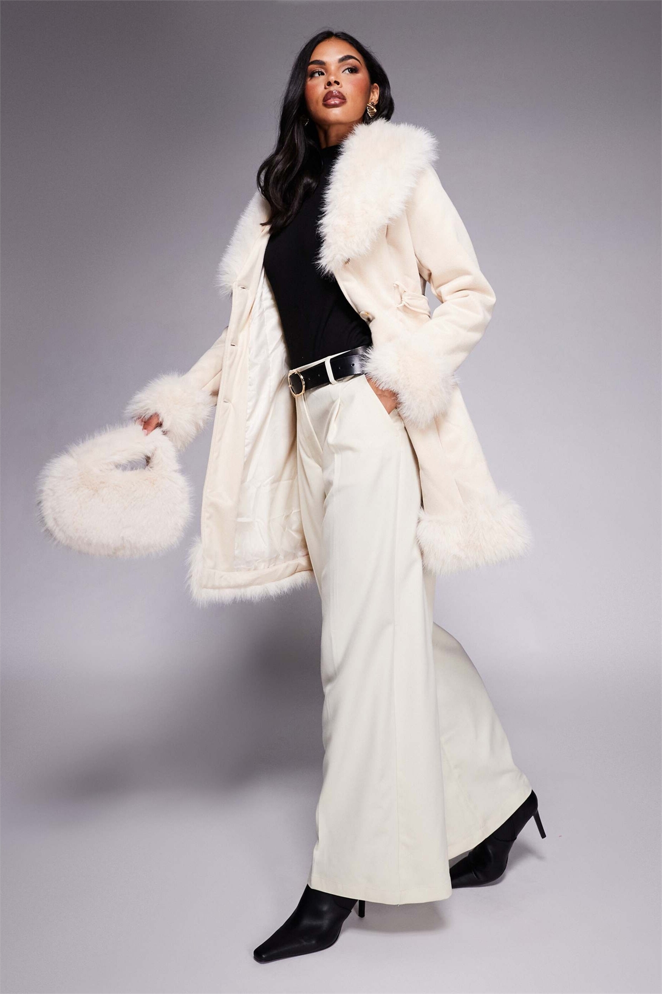 Длинное пальто «Penny Lane» с поясом и отделкой из искусственного меха Simmer Lane