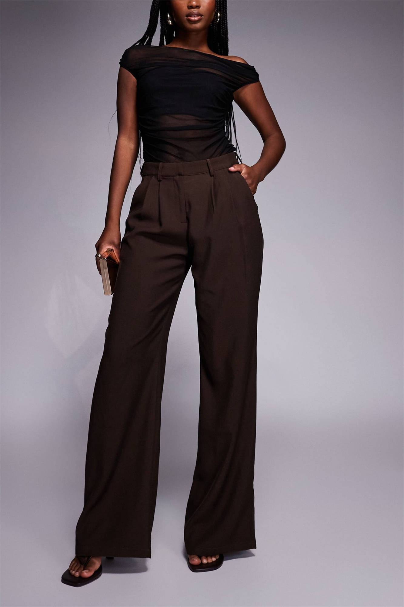 Брюки классического кроя с высокой талией и складками спереди