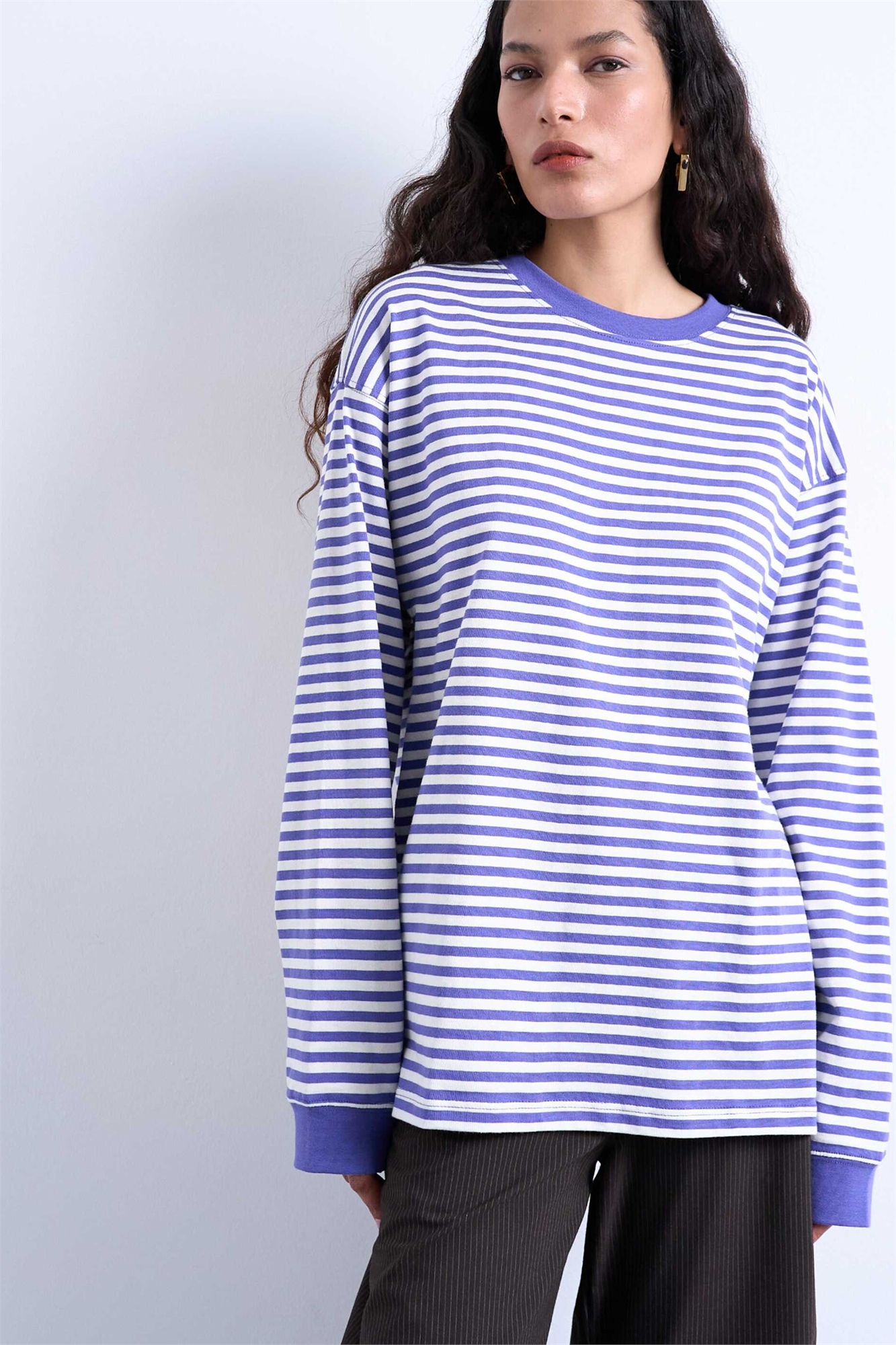 Футболка-скэтер свободного кроя с полосками и длинными рукавами