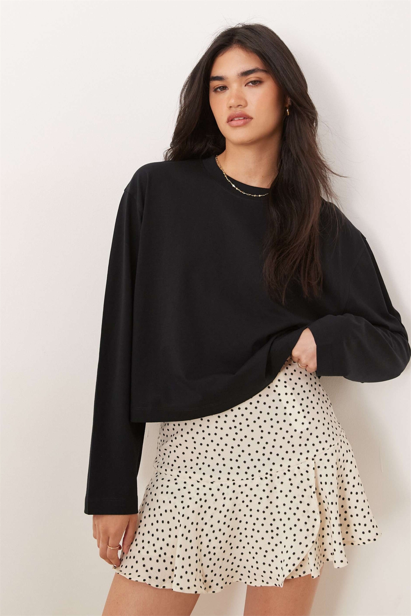 Короткая футболка прямого кроя с длинными рукавами