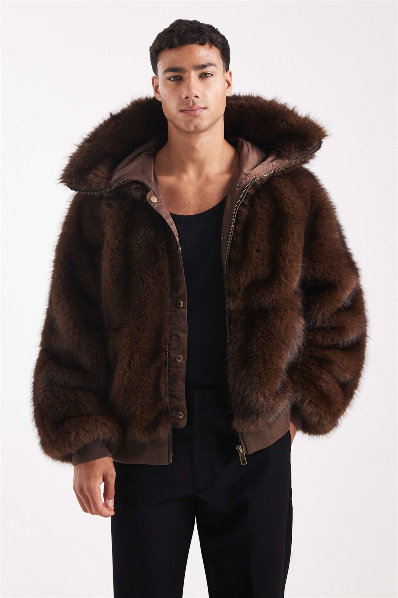 Куртка с капюшоном из искусственного меха свободного кроя