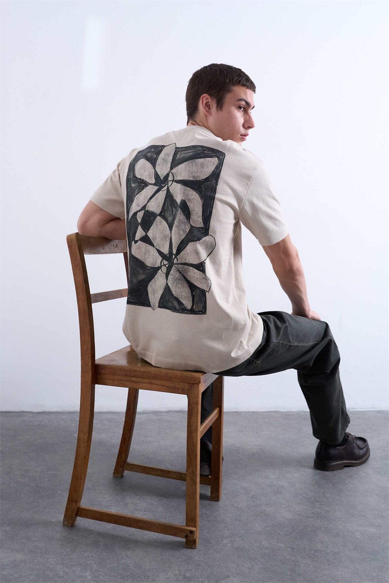 Футболка свободного кроя с цветочным принтом спереди и сзади