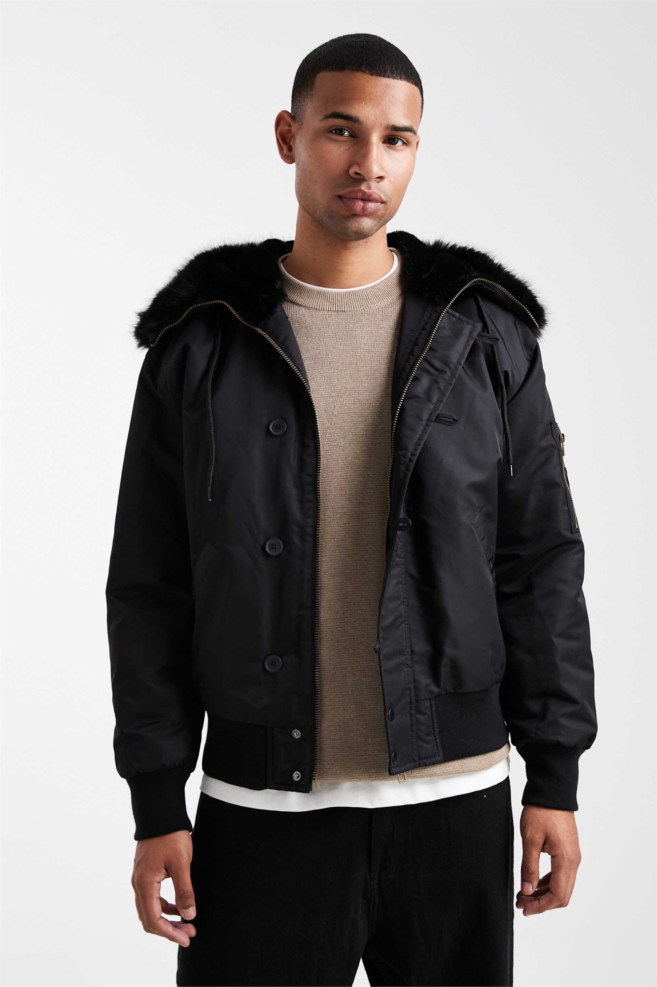 Бомбер MA1 свободного кроя с капюшоном из искусственного меха