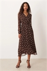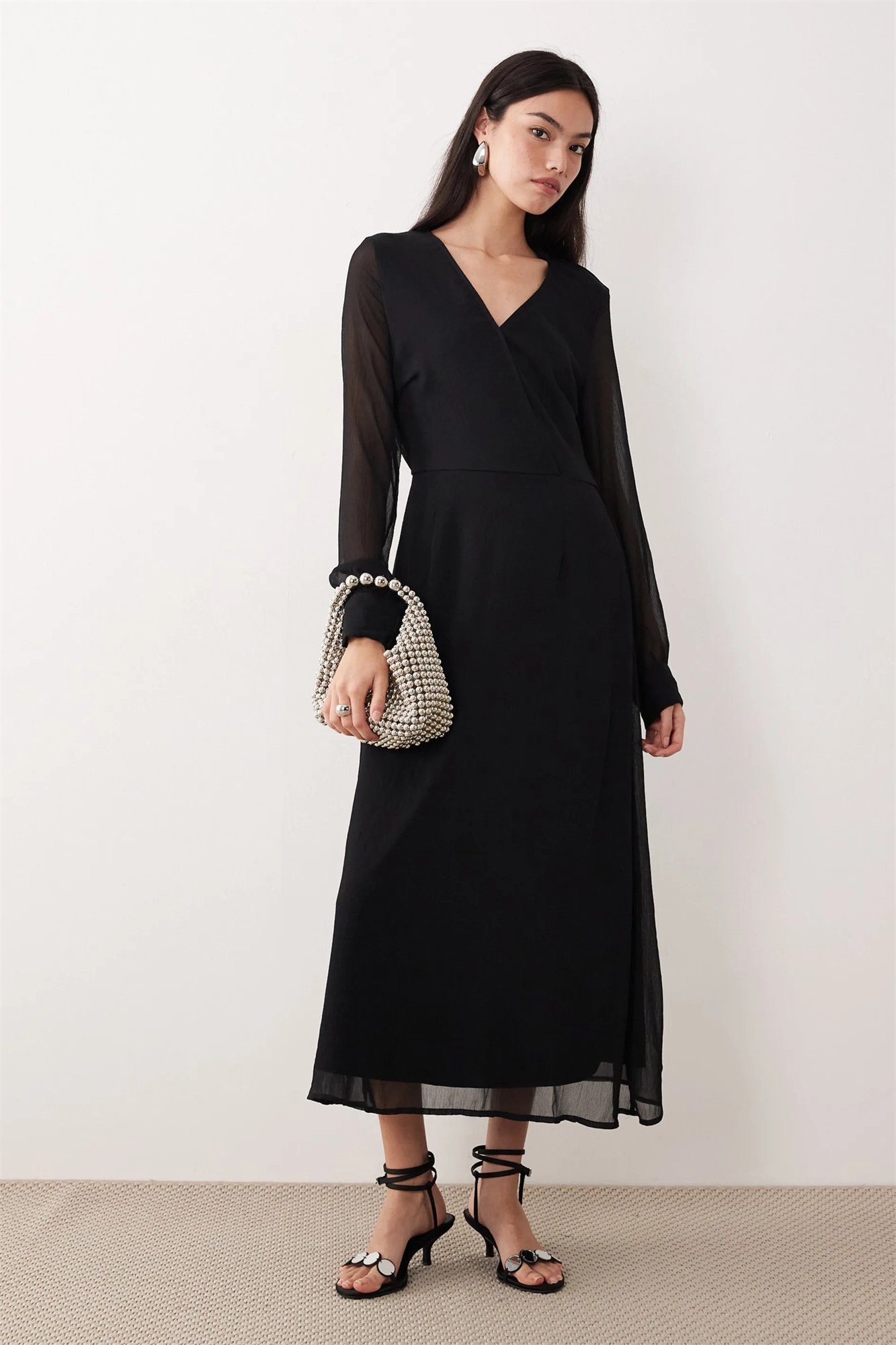Платье средней длины с длинными рукавами и V-образным вырезом