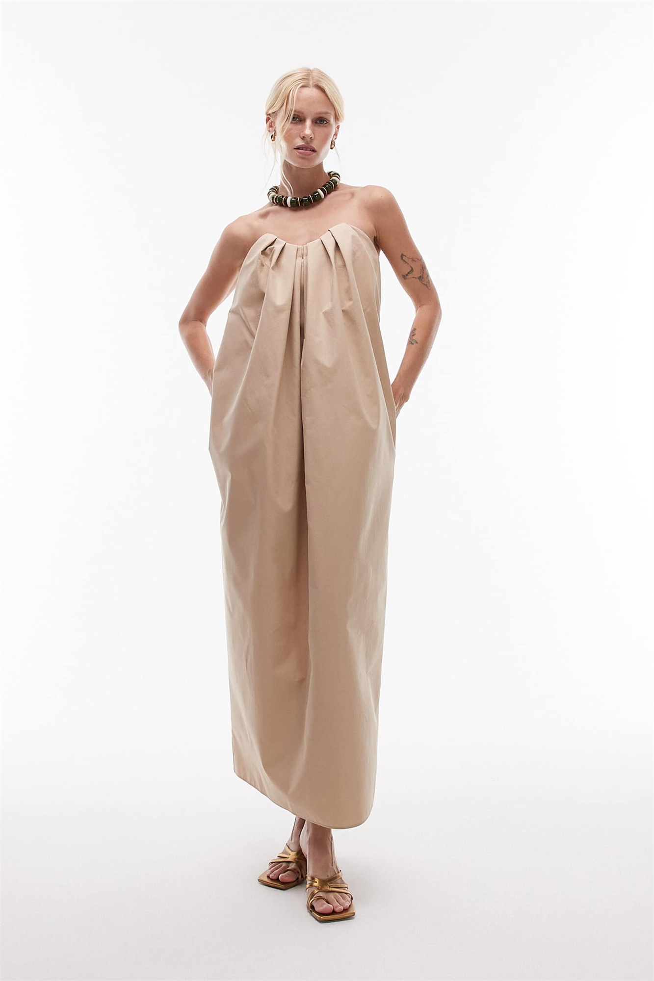 Платье средней длины с завязками на шее из высококачественного хлопка с Кайей Гербер