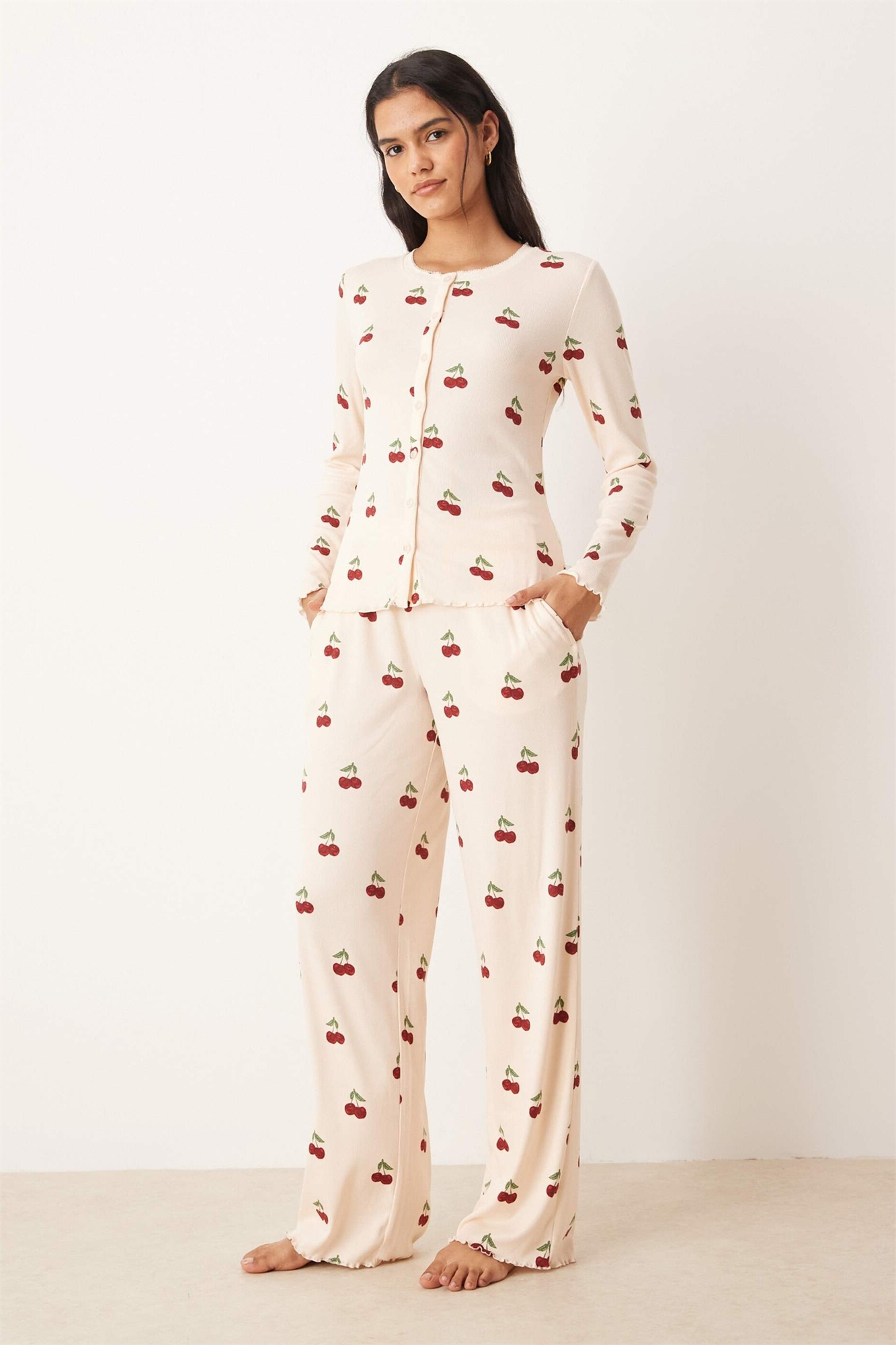 Пижама с длинными рукавами и ребристой тканью