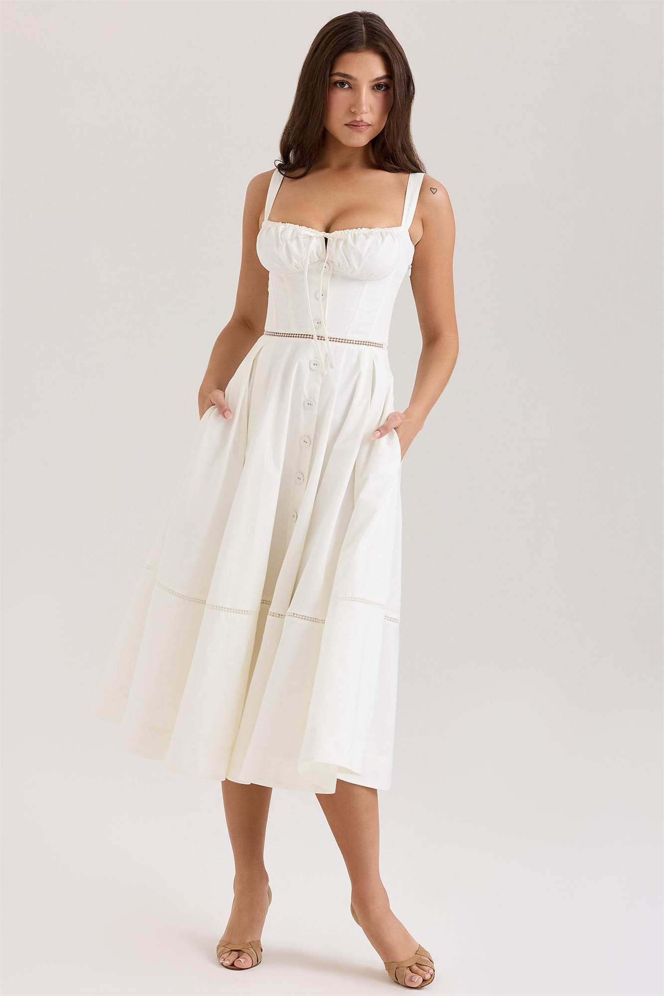 Хлопковое платье средней длины с пуговицами спереди от Chiarina