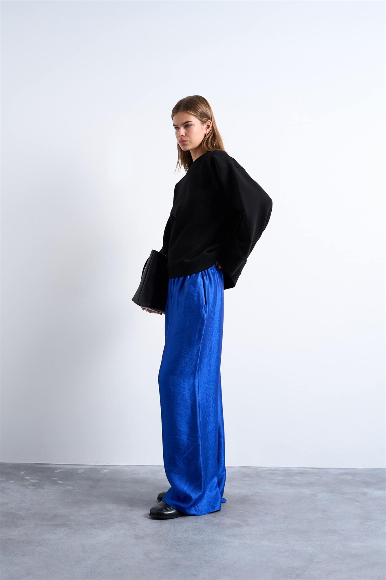 Брюки из фактурного сатина с прямыми брючинами
