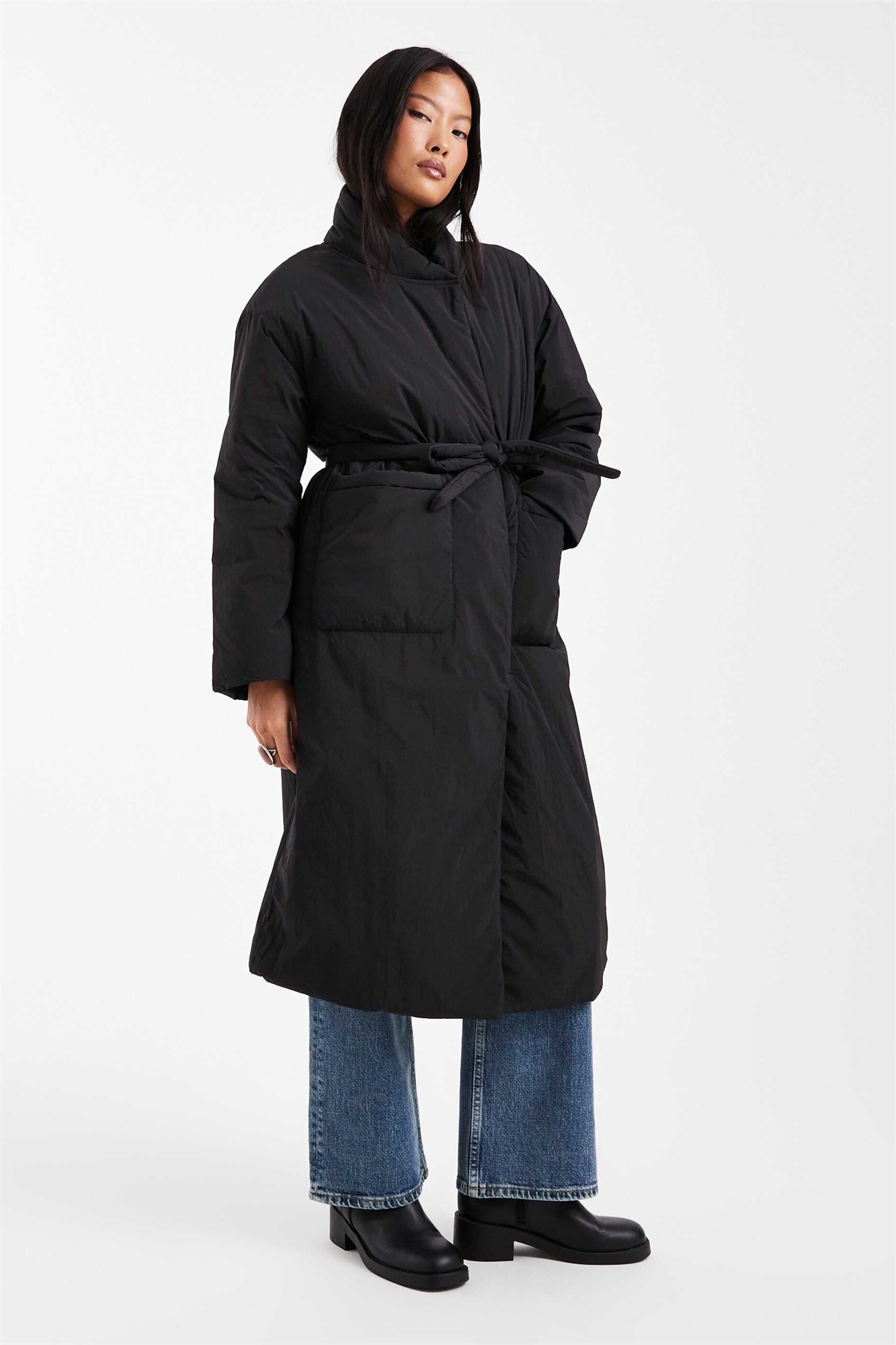 Пальто удлиненного кроя с завязкой на талии