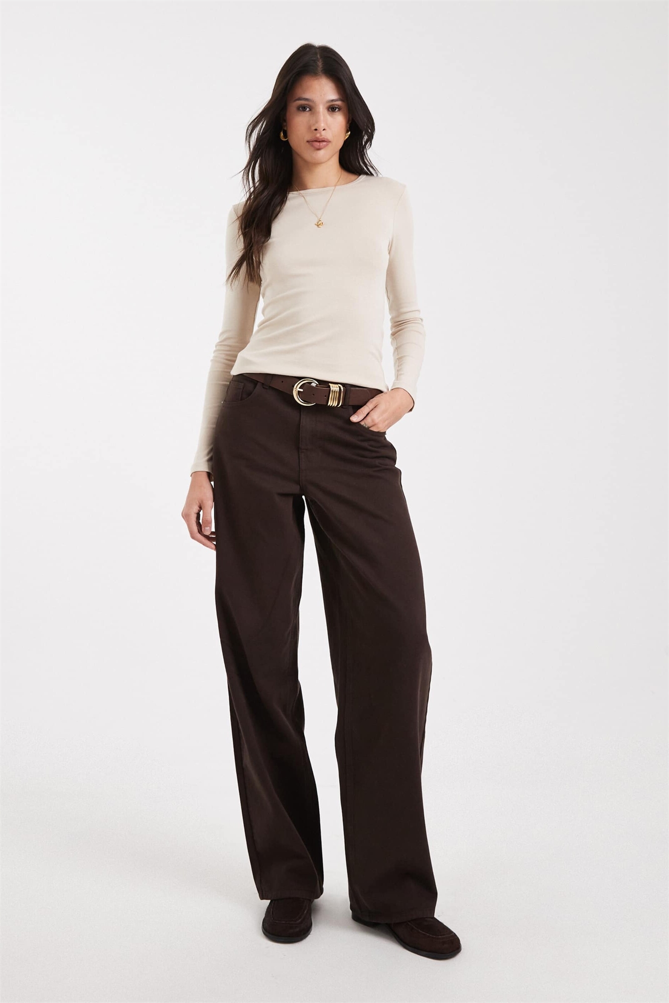 Джинсы с высокой талией и расклешенными брючинами