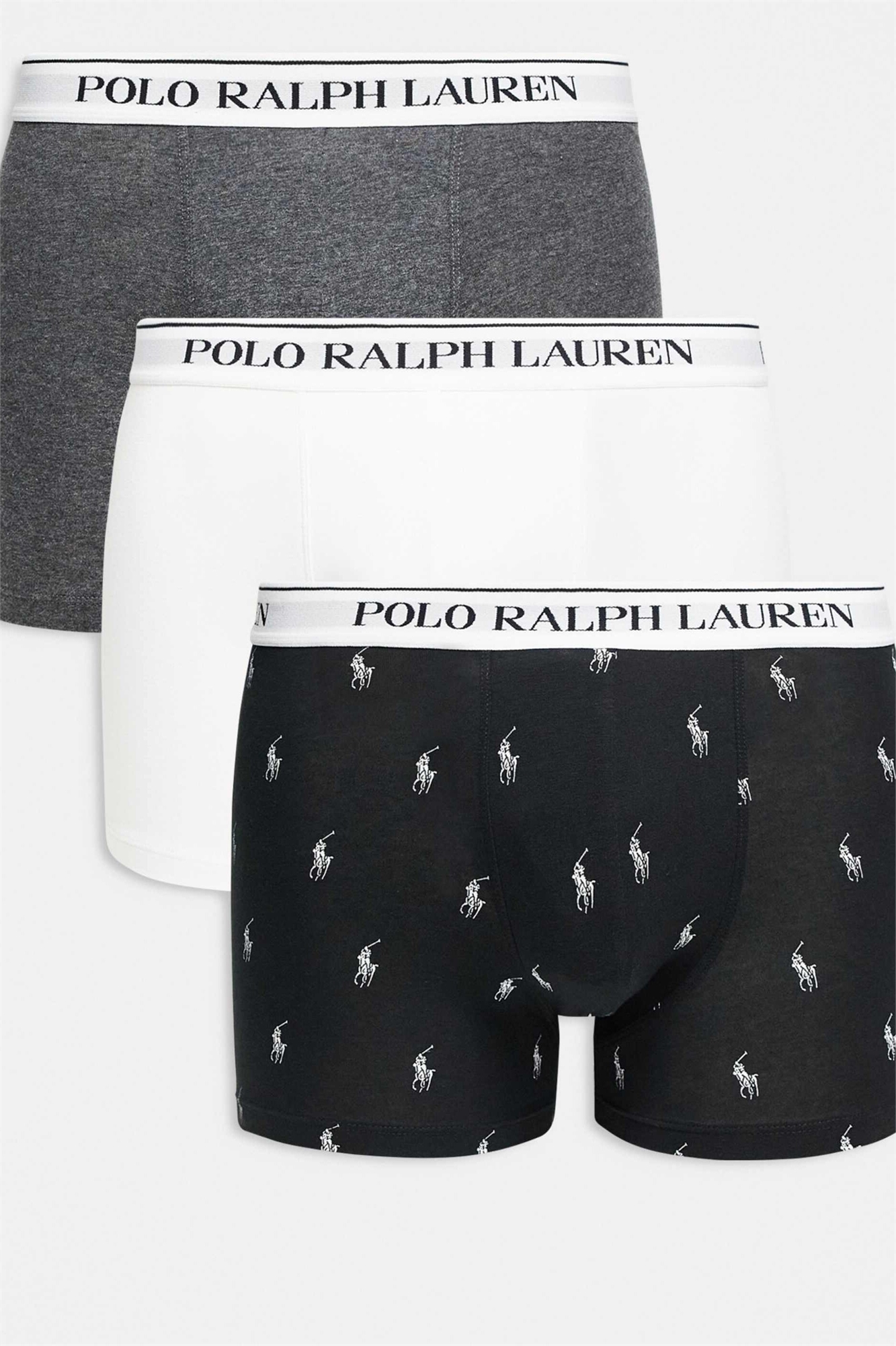 Набор из 3-х пар классических плавок с белым логотипом на поясе, однотонных и с рисунком по всей поверхности