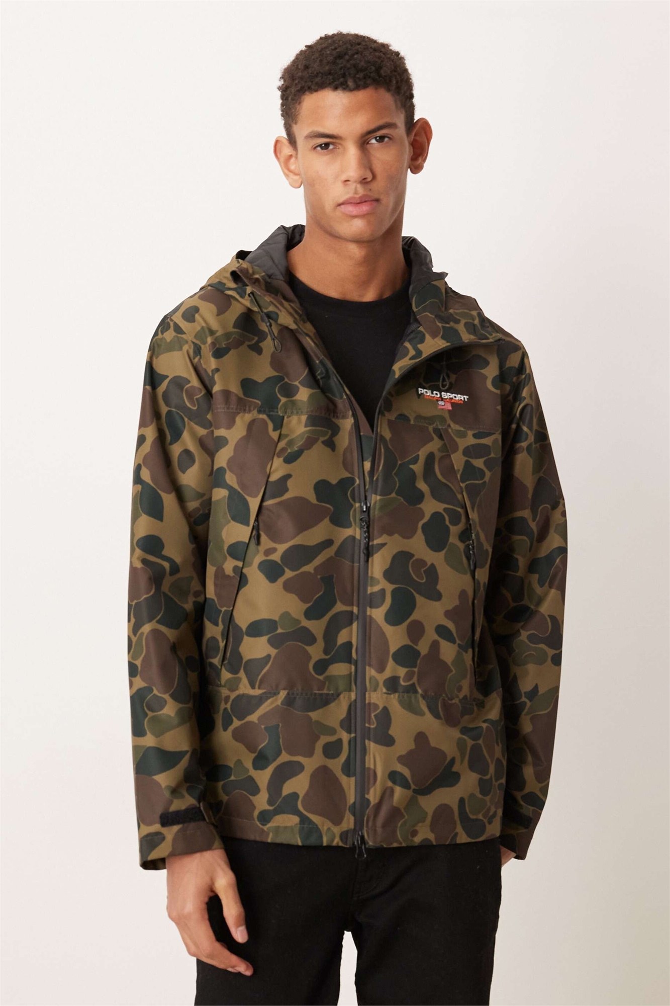 Спортивная куртка-бомбер с капюшоном и утеплителем, с камуфляжным принтом и логотипом Eastview
