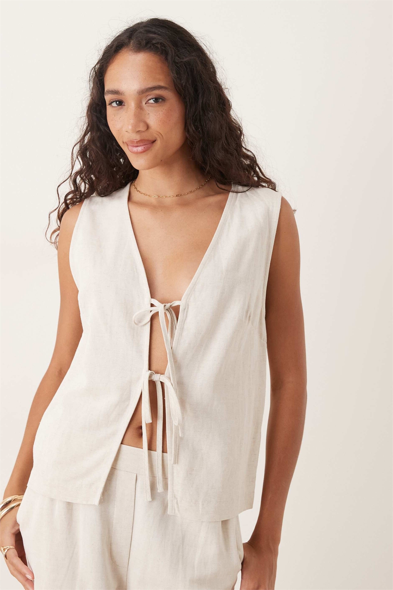 Жилет с завязками спереди из льна co-ord